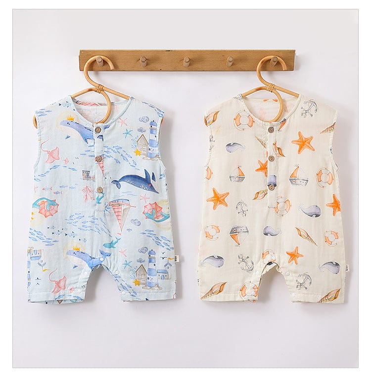 Baby Unisex Sleeveless Cute Ocean Animals Pattern bodysuit