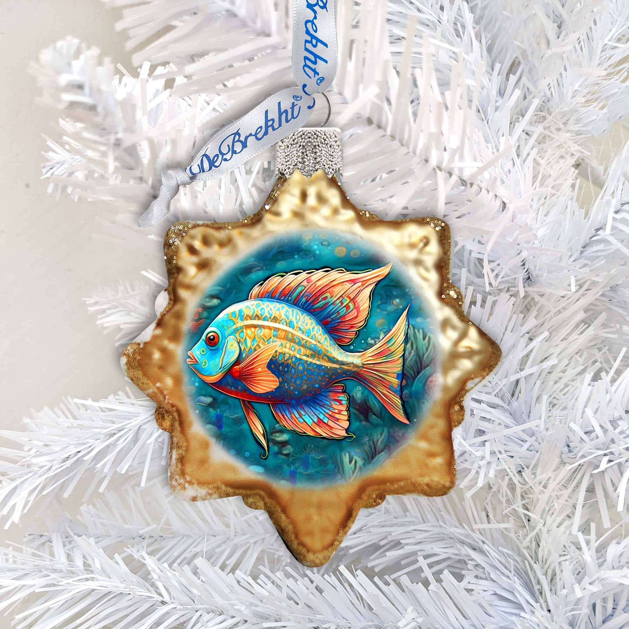 Holiday Coastal Ornament – Ocean Fish Keepsake Glass Ornaments by G. Debrekht – Coastal Holiday Decor – 777405