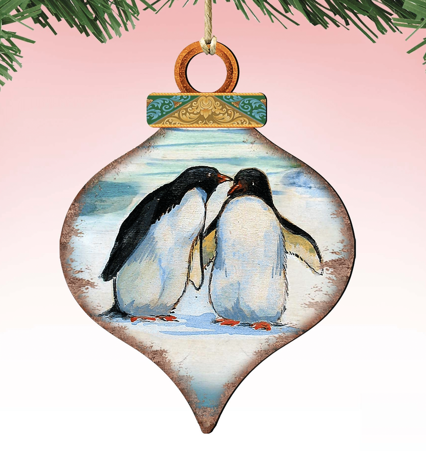 Penguins Drop Wooden Ornaments by G. DeBrekht – Wildlife Holiday Decor – 8035382