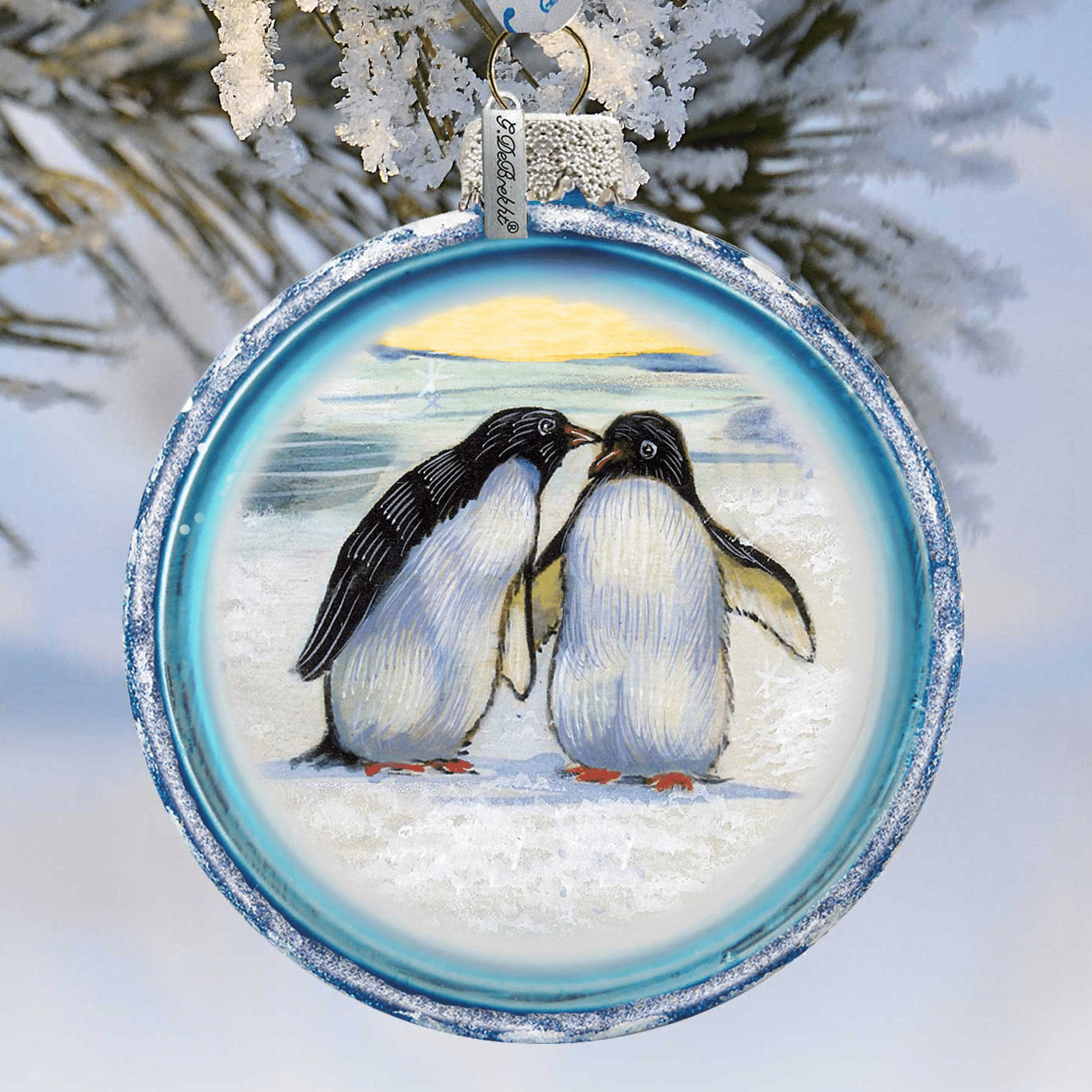 Penguins Glass Ornament by G. DeBrekht – Wildlife Holiday Decor – 764-015