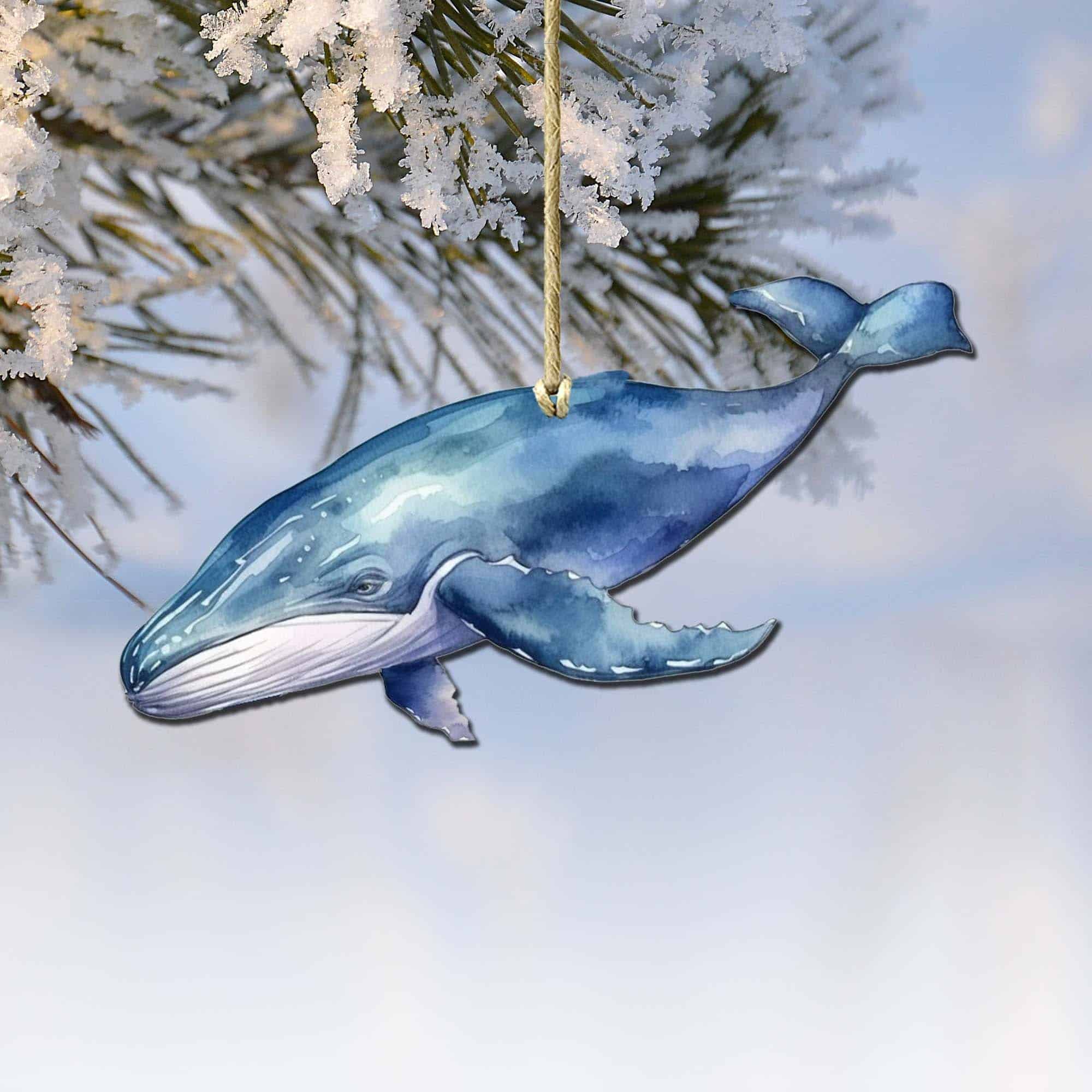 Blue Humpback Whale Wooden Ornaments by G.Debrekht – Wildlife Holiday Decor – 8710103-1
