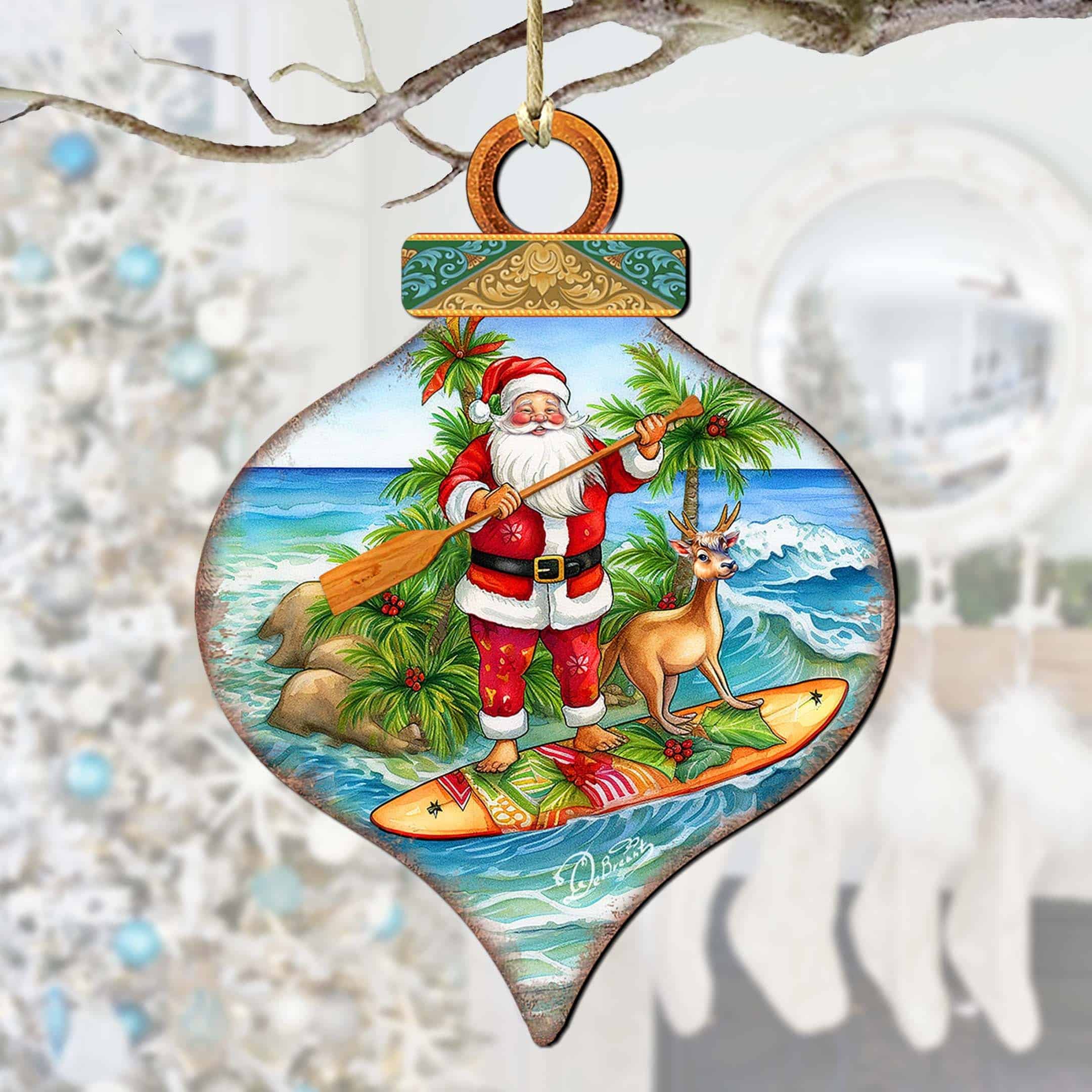 Beach Themed Ornaments – Santa’s Surf Wooden Ornaments by G.Debrekht Coastal Holiday Decor – 8688187