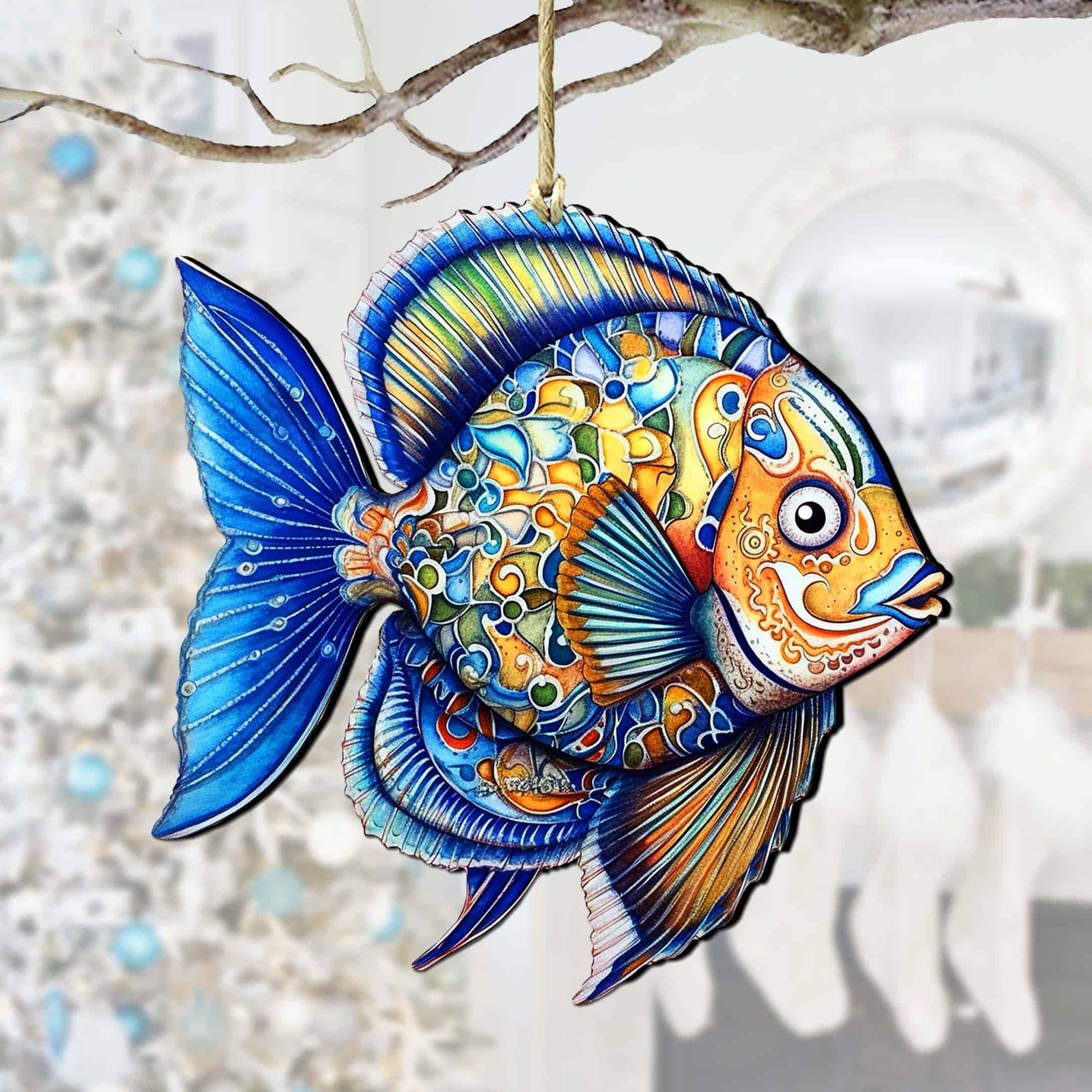 Wooden Christmas Tree Decorations – Blue Fish Wooden Ornaments by G.Debrekht Coastal Holiday Decor – 8688301