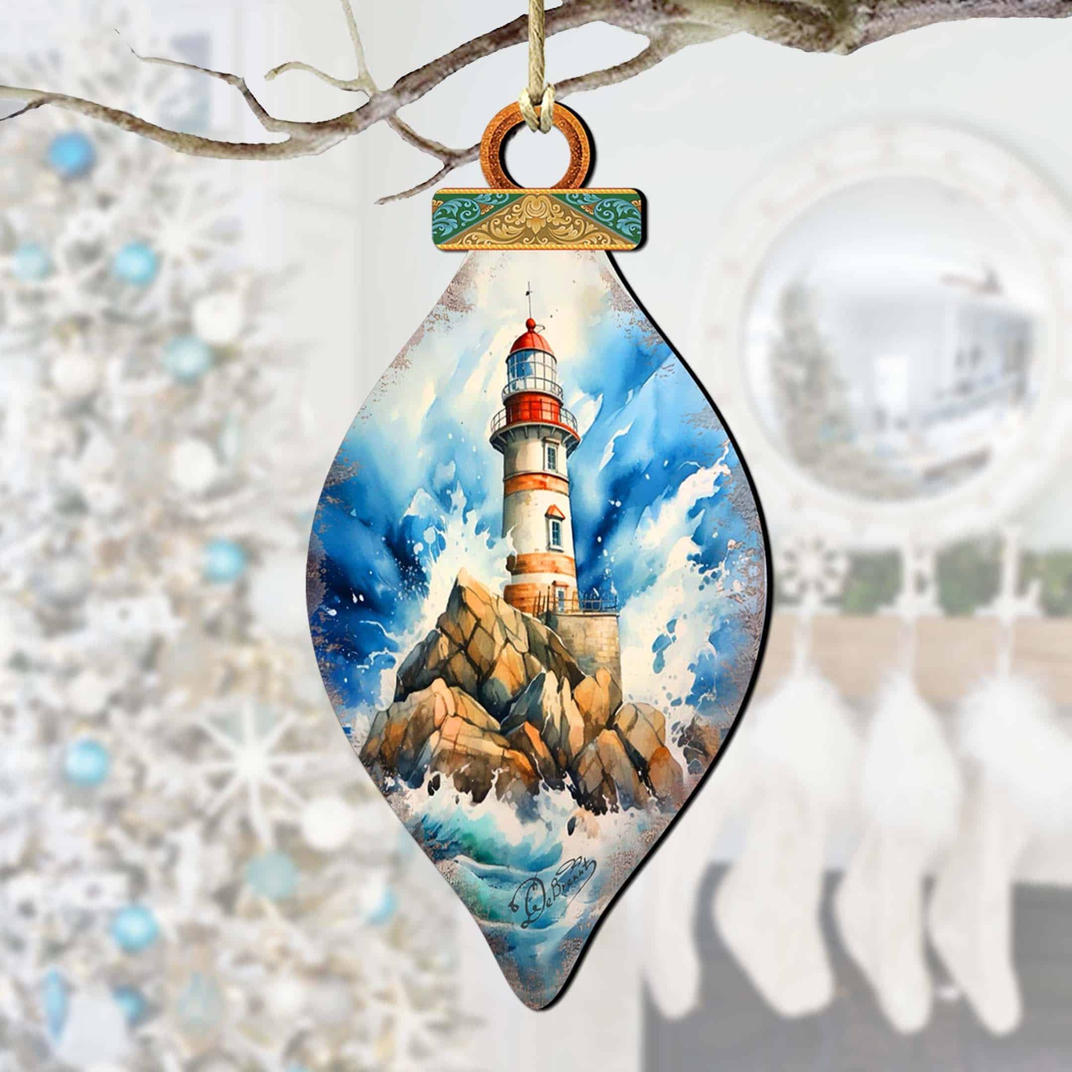 Wooden Christmas Tree Decorations – Lighthouse Wooden Ornaments by G.Debrekht Coastal Holiday Decor – 8688177