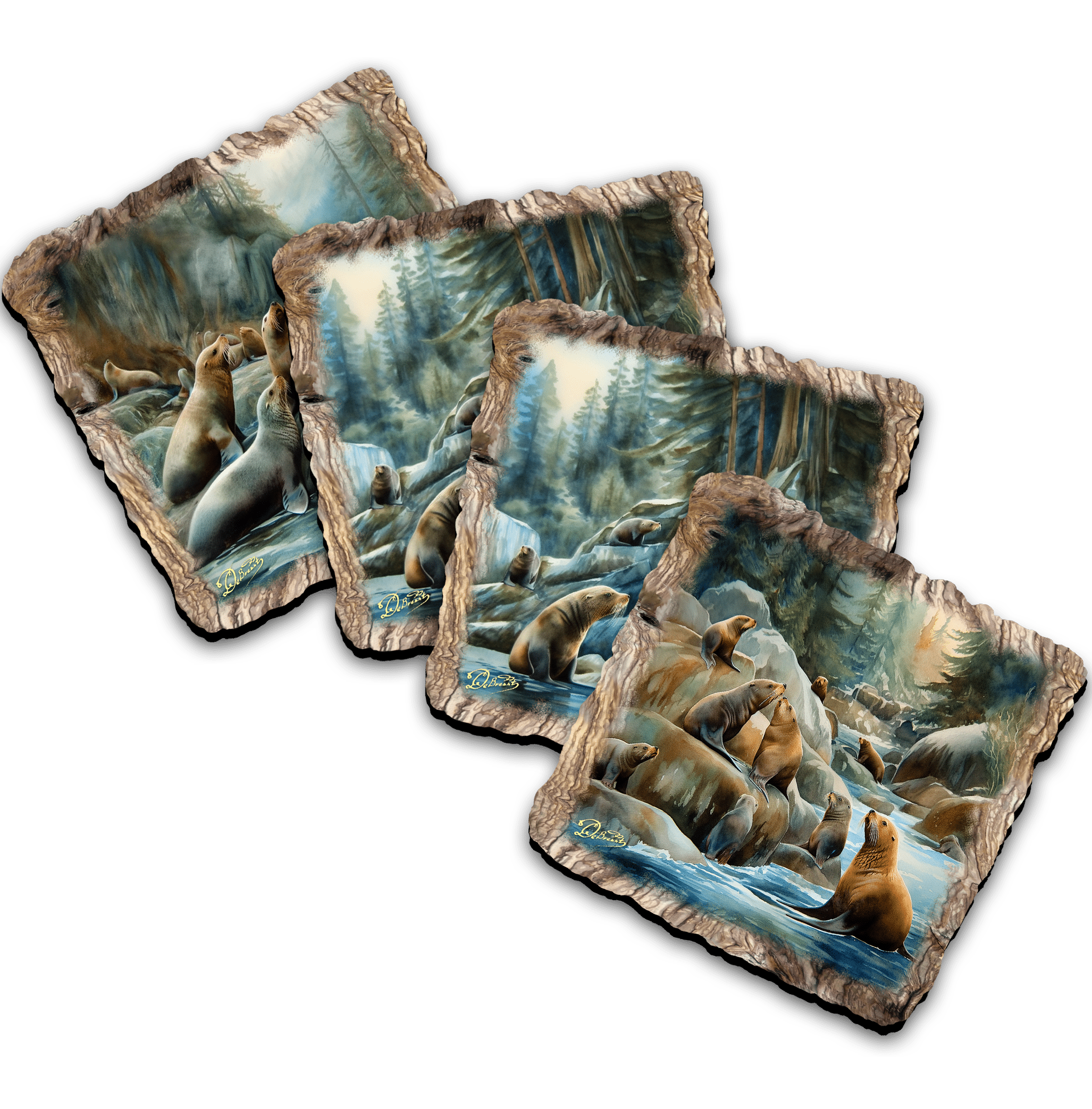 Coastal Sea Lions Wooden Cork Coasters Gift Set of 4 by Nature Wonders Nature Wildlife Decor – 95386C-S4
