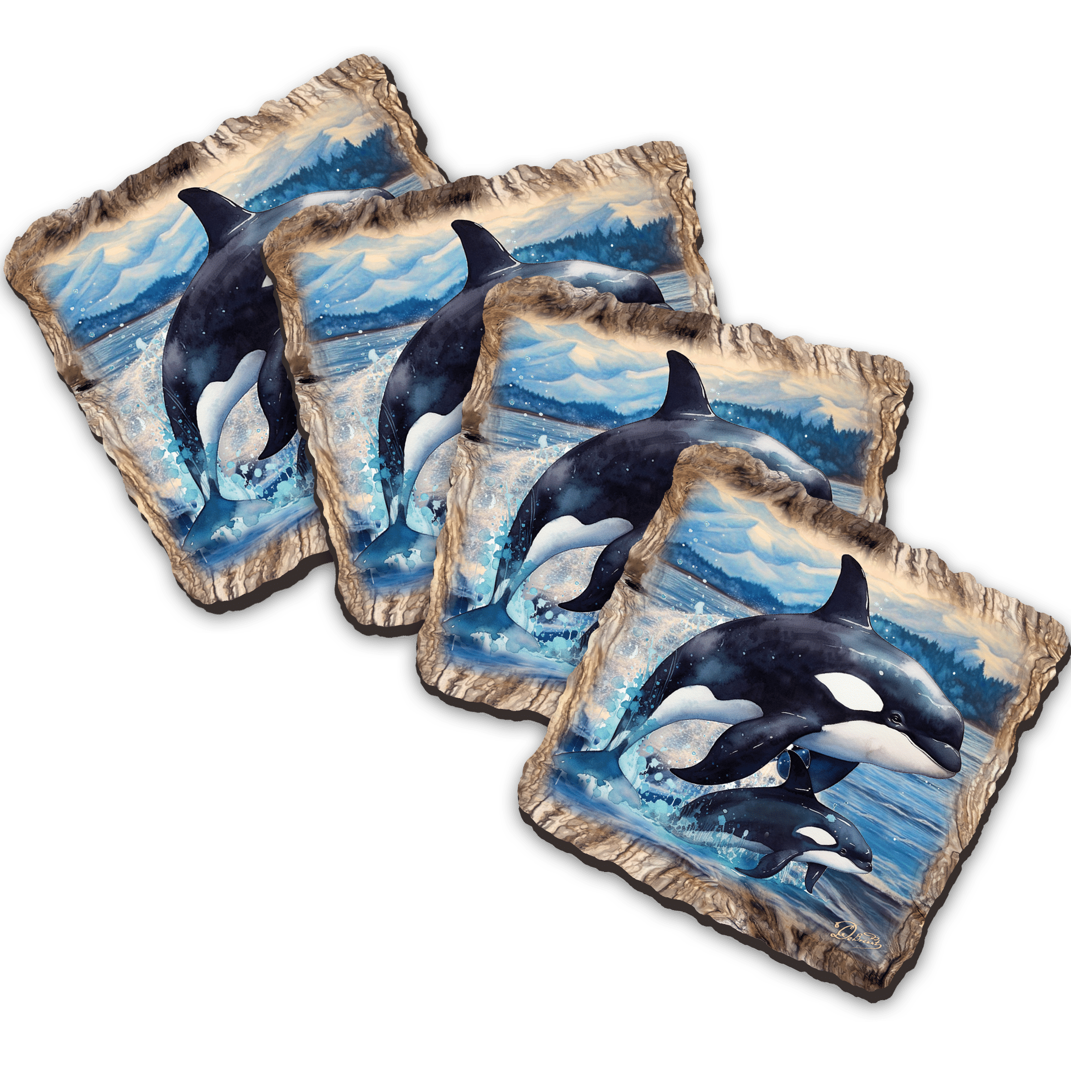 Orca Wooden Cork Coasters Gift Set of 4 by Nature Wonders Coastal Nature Wildlife Decor – 95396C-S4