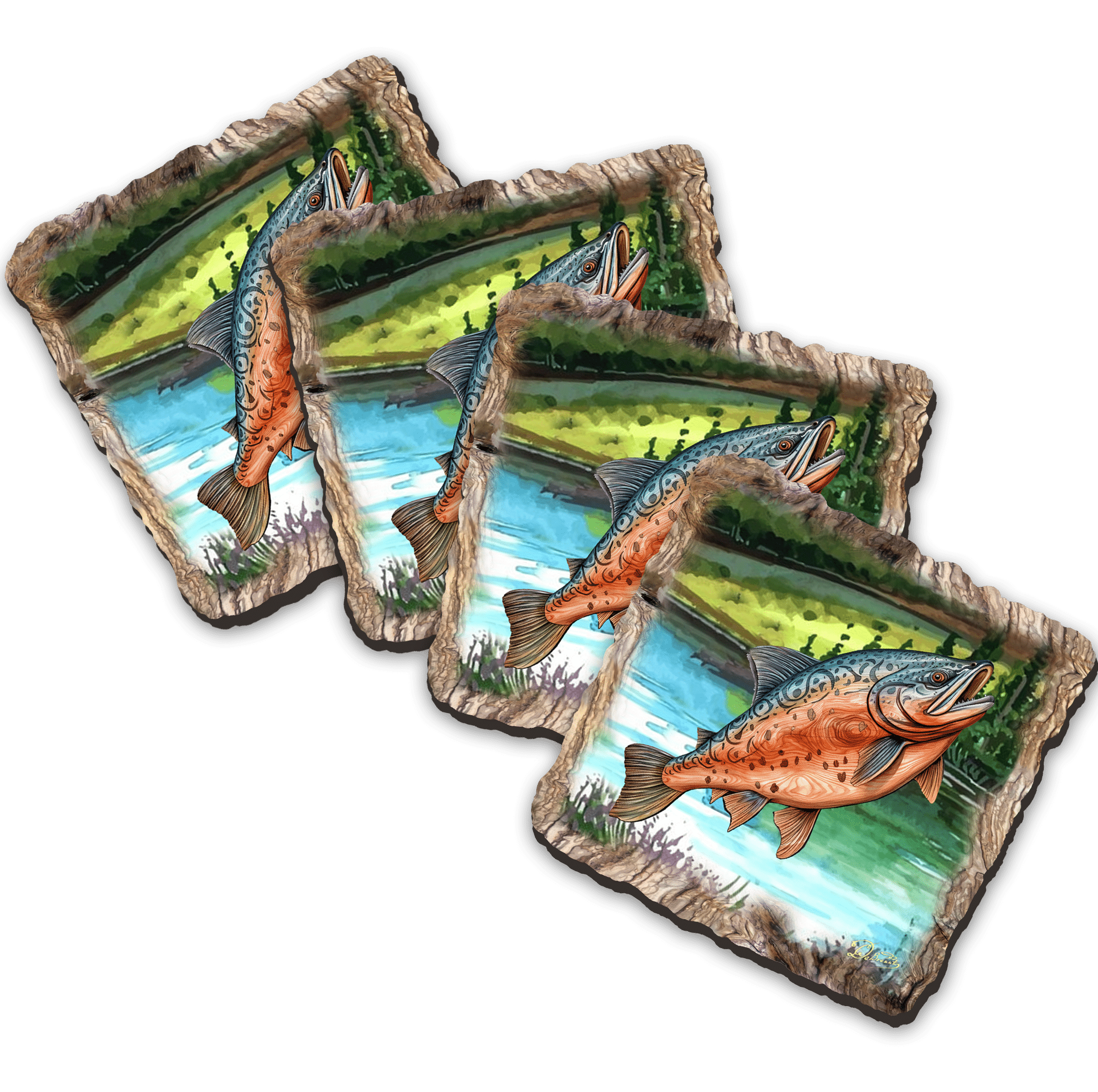 Sea Creatures Wooden Cork Coasters Gift Set of 4
