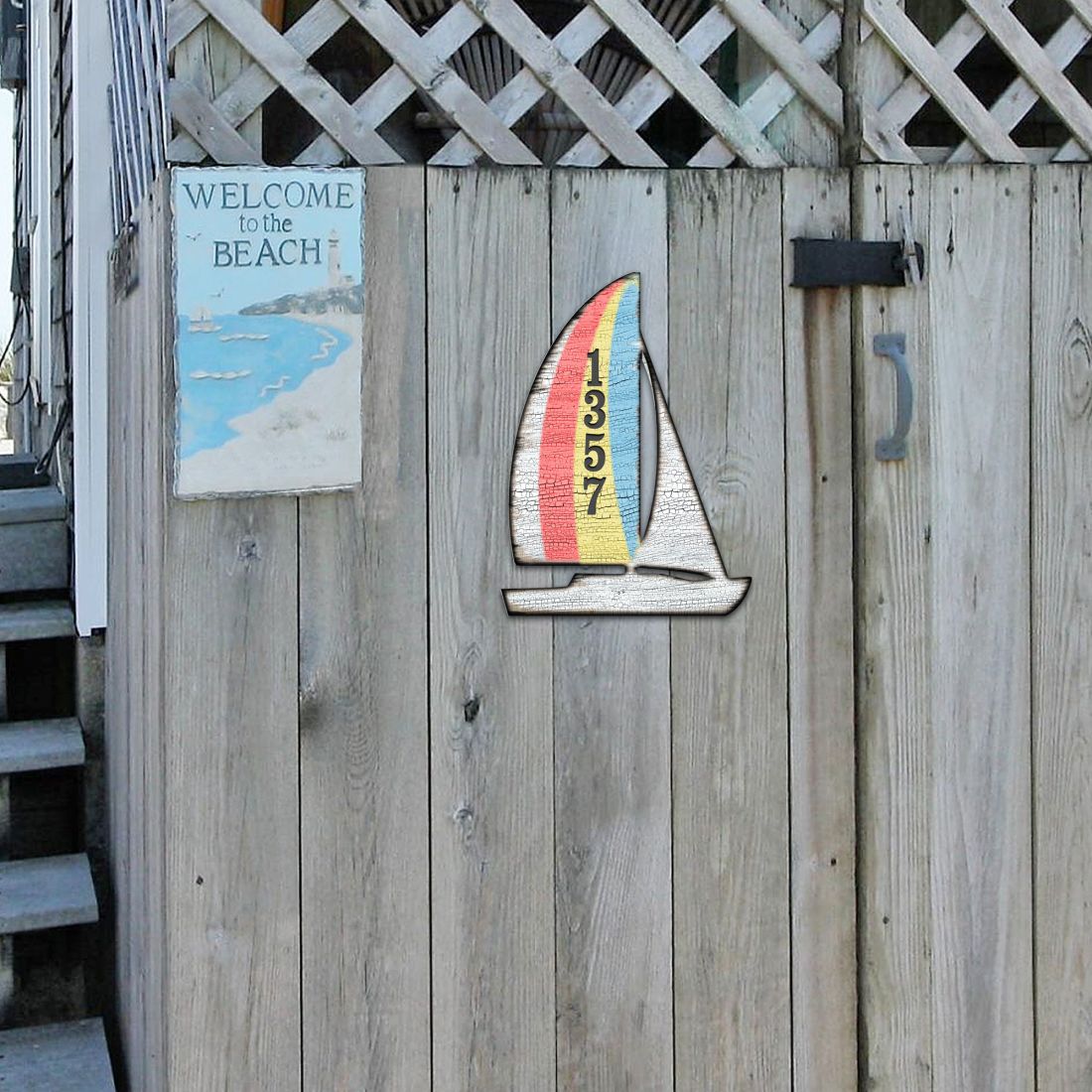 Yacht Coastal Wooden House Number Sign by G. DeBrekht – Coastal Sea-Life Décor – Handcrafted Wooden Handcrafted Wooden Handcrafted Wooden Handcrafted Wooden Address Sign – MA985242