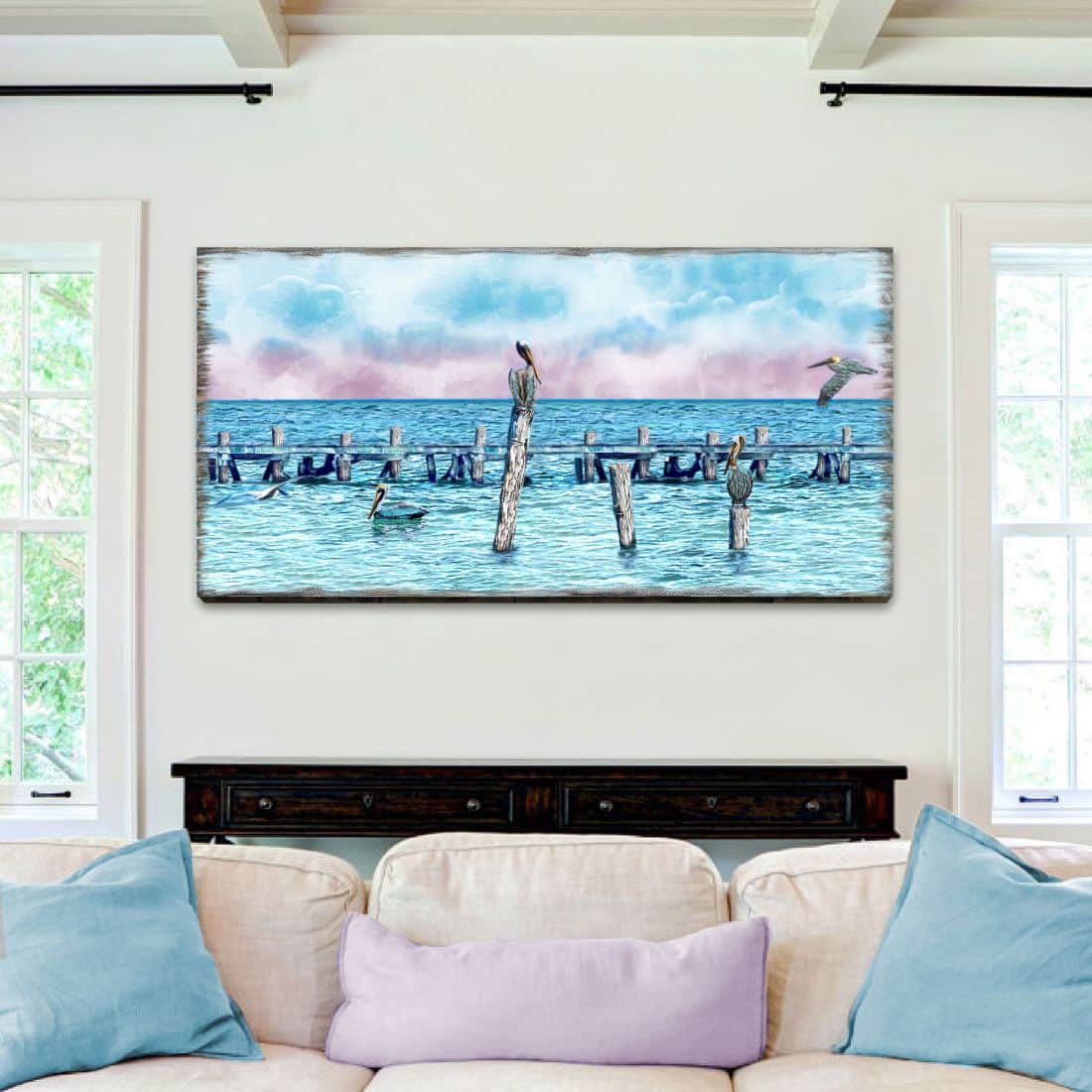 Ocean Serenity Pelicans Wooden Coastal Wall Art
