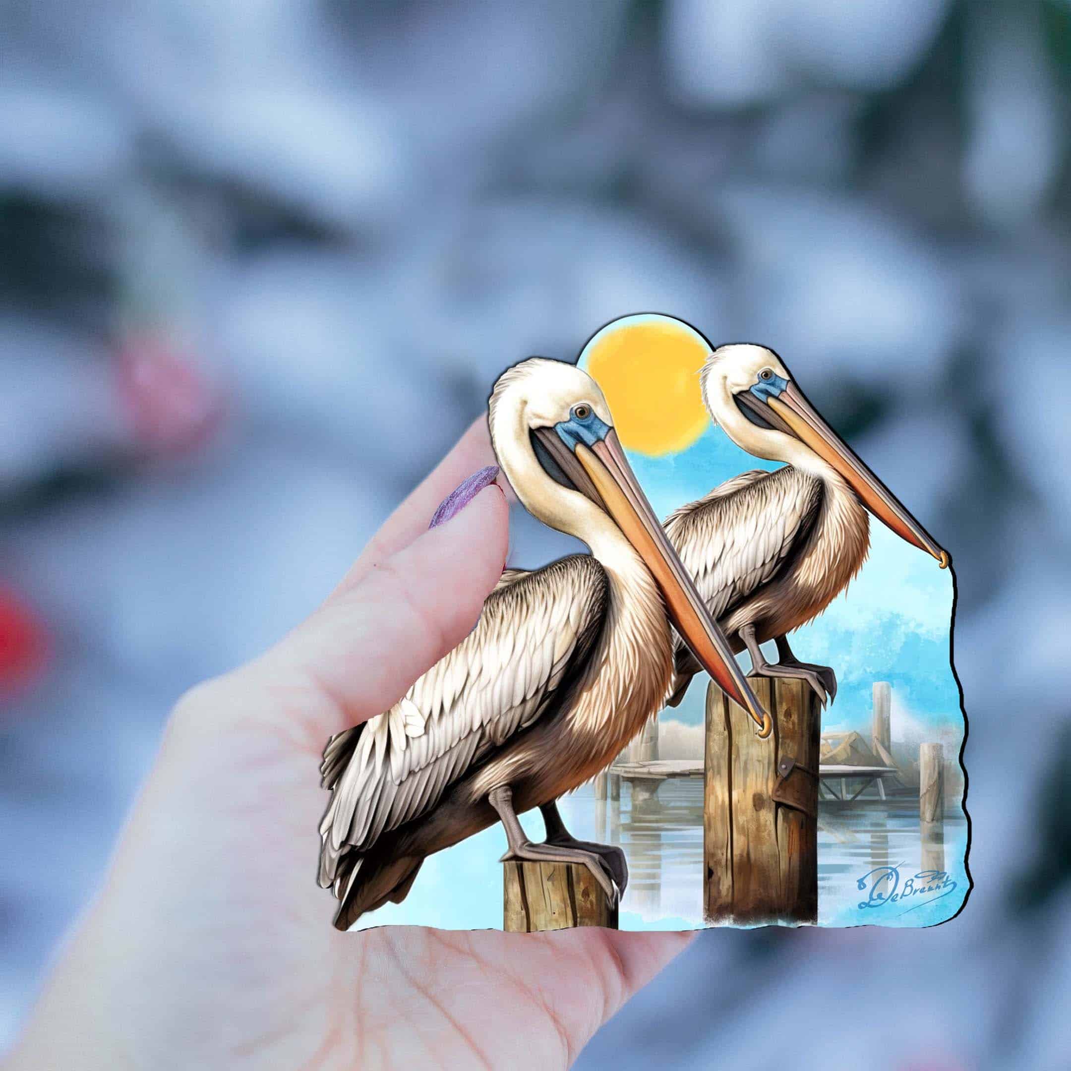 Elevate your coastal holiday decor with these Pelicans Wooden Ornaments by G.Debrekht. Crafted from high-quality wood, these ornaments feature intricate details and a charming beach theme. Perfect for adding a touch of seaside charm to your holiday tree or home.