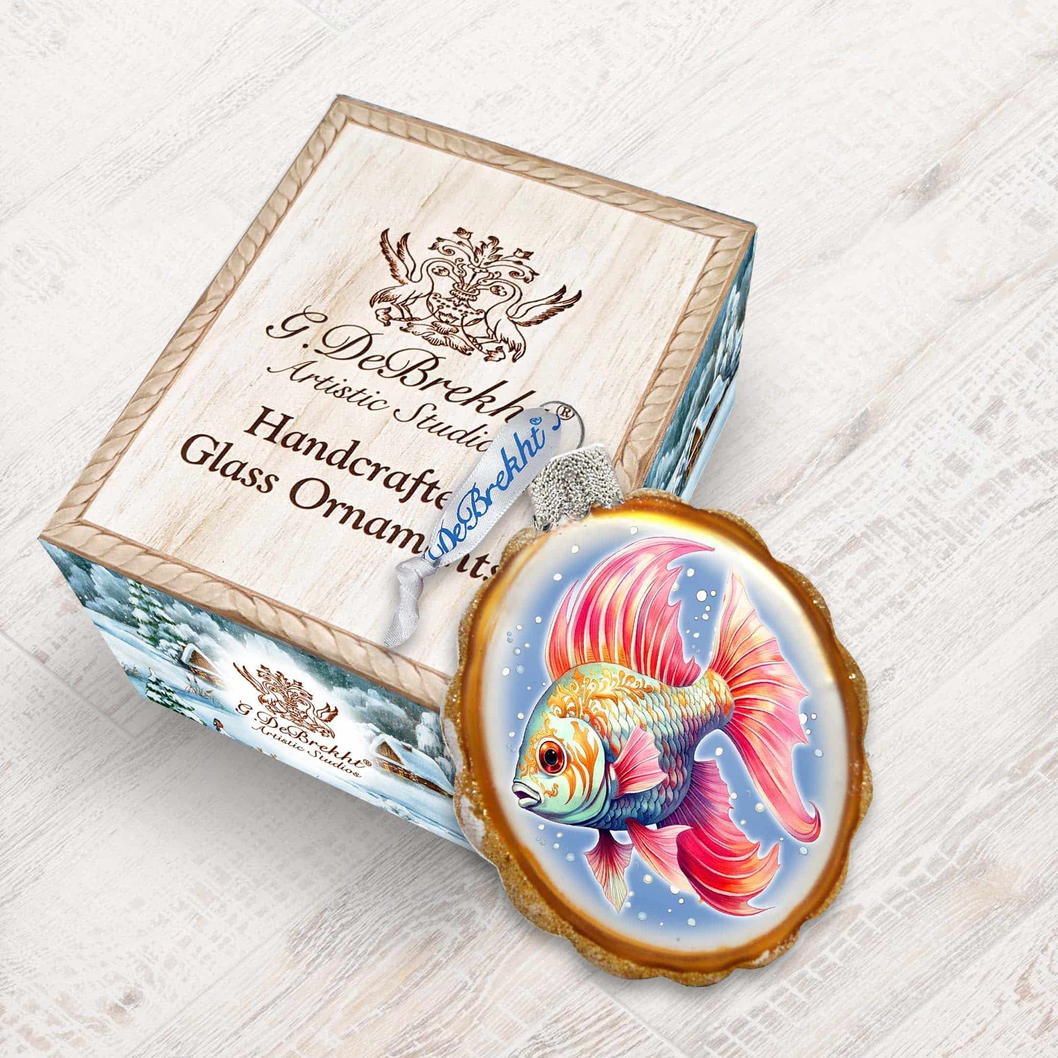 Introduce a touch of coastal charm to your holiday Decor with these Red Fins Fish Keepsake Glass Ornaments by G. Debrekht. Made with exquisite attention to detail; each ornament features vibrant red fins that evoke the beauty of the ocean. A must-have for any beach lover’s Christmas tree.