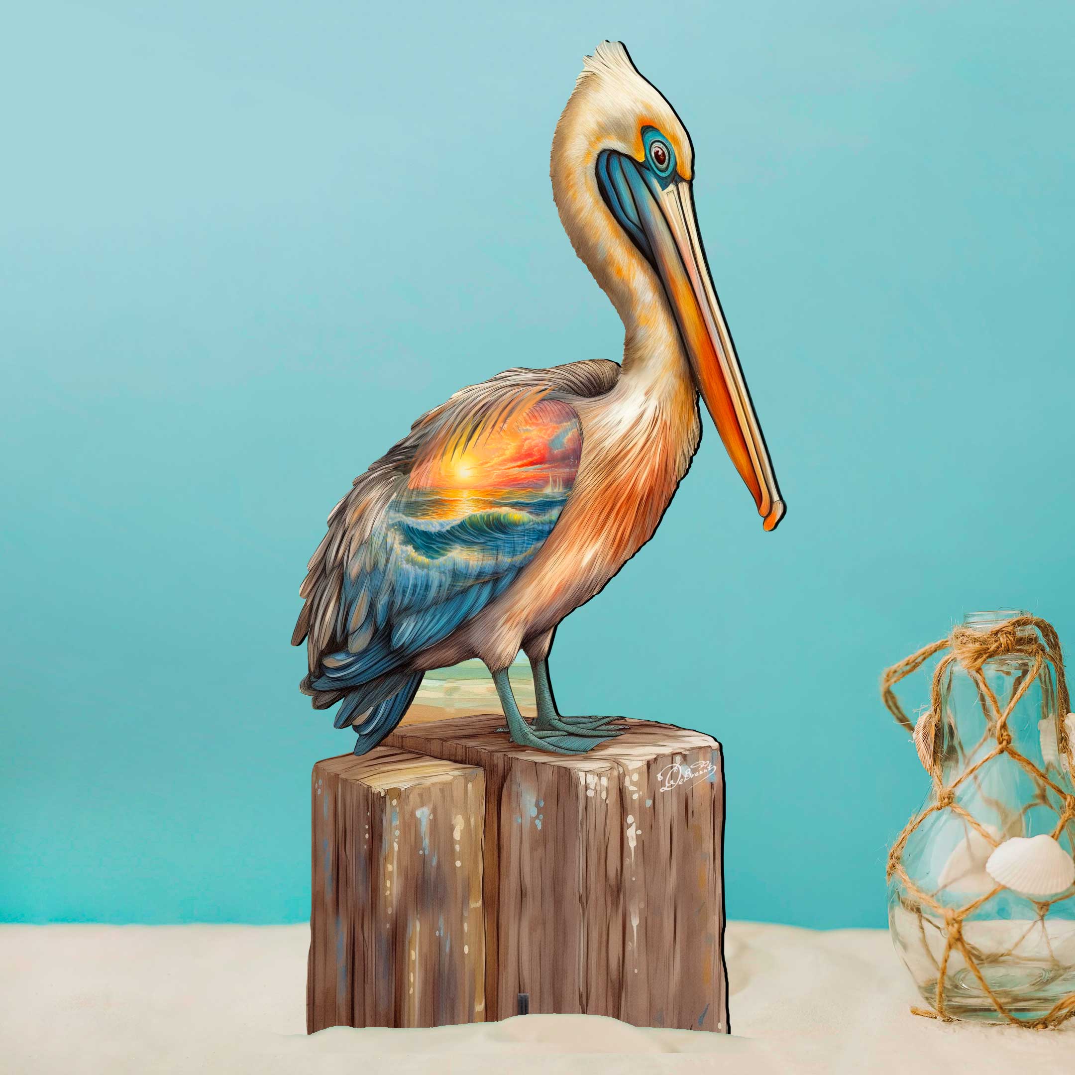 This beautifully designed Coastal Pelican Wooden Decoration, created by industry expert G. Debrekht, adds a touch of the coast to your holiday Decor. Made with high-quality materials, this realistic pelican figurine is the perfect addition to both indoor and outdoor settings. Enhance your home this holiday season with this unique and expertly crafted decorative piece.
