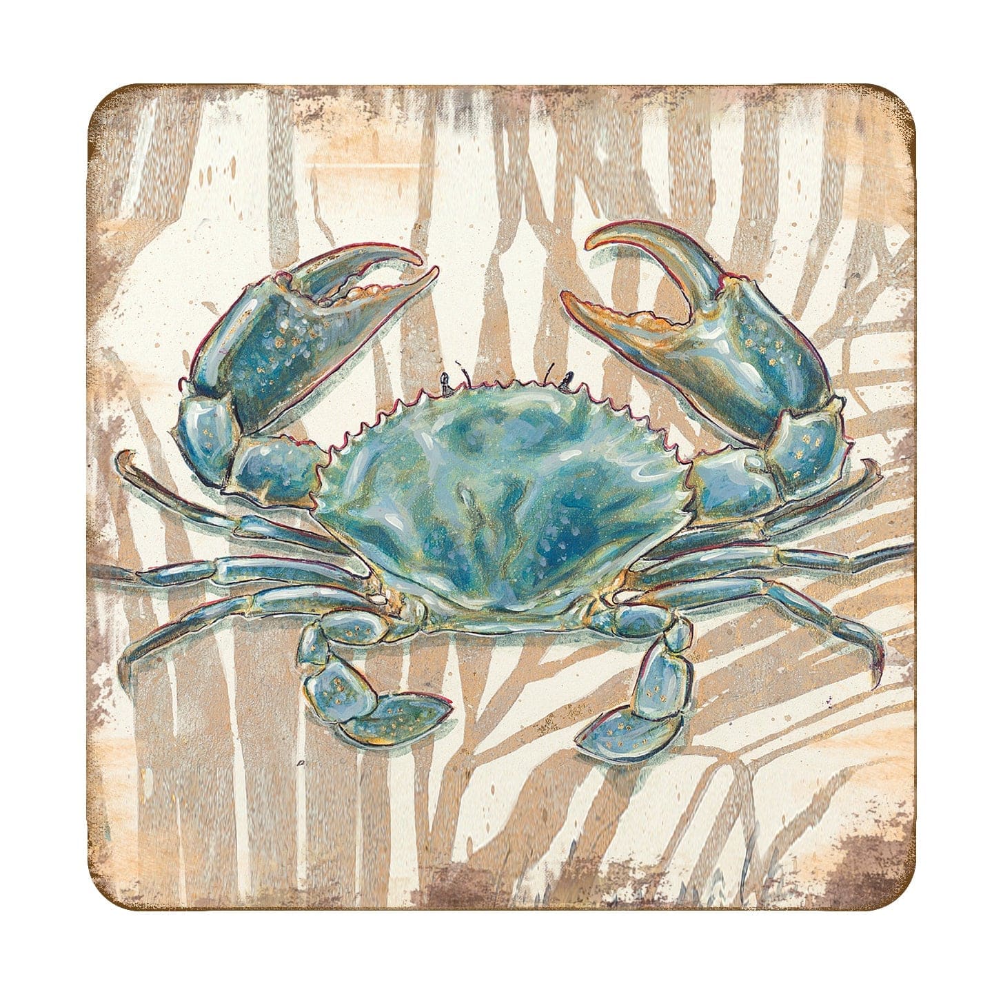 Crab Wooden Cork Coastal Coasters Gift Set of 4