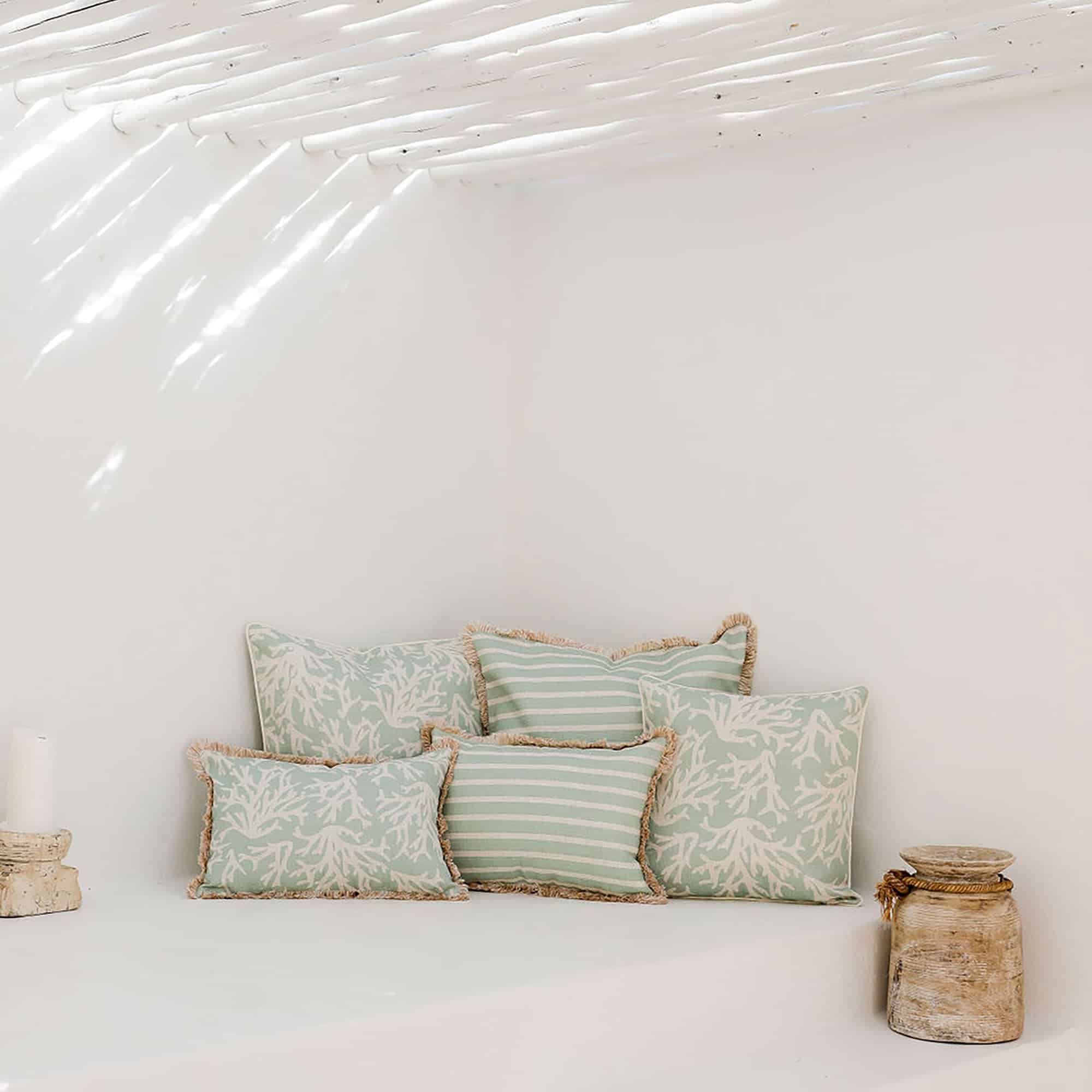 Elevate your style game with this 35cm x 50cm Coastal Fringe cushion cover! Featuring a beautiful Coastal Coral Seafoam design, your couch will be the envy of the sea (or at least your street). Bring a little nautical charm to your home – no longshoreman required!