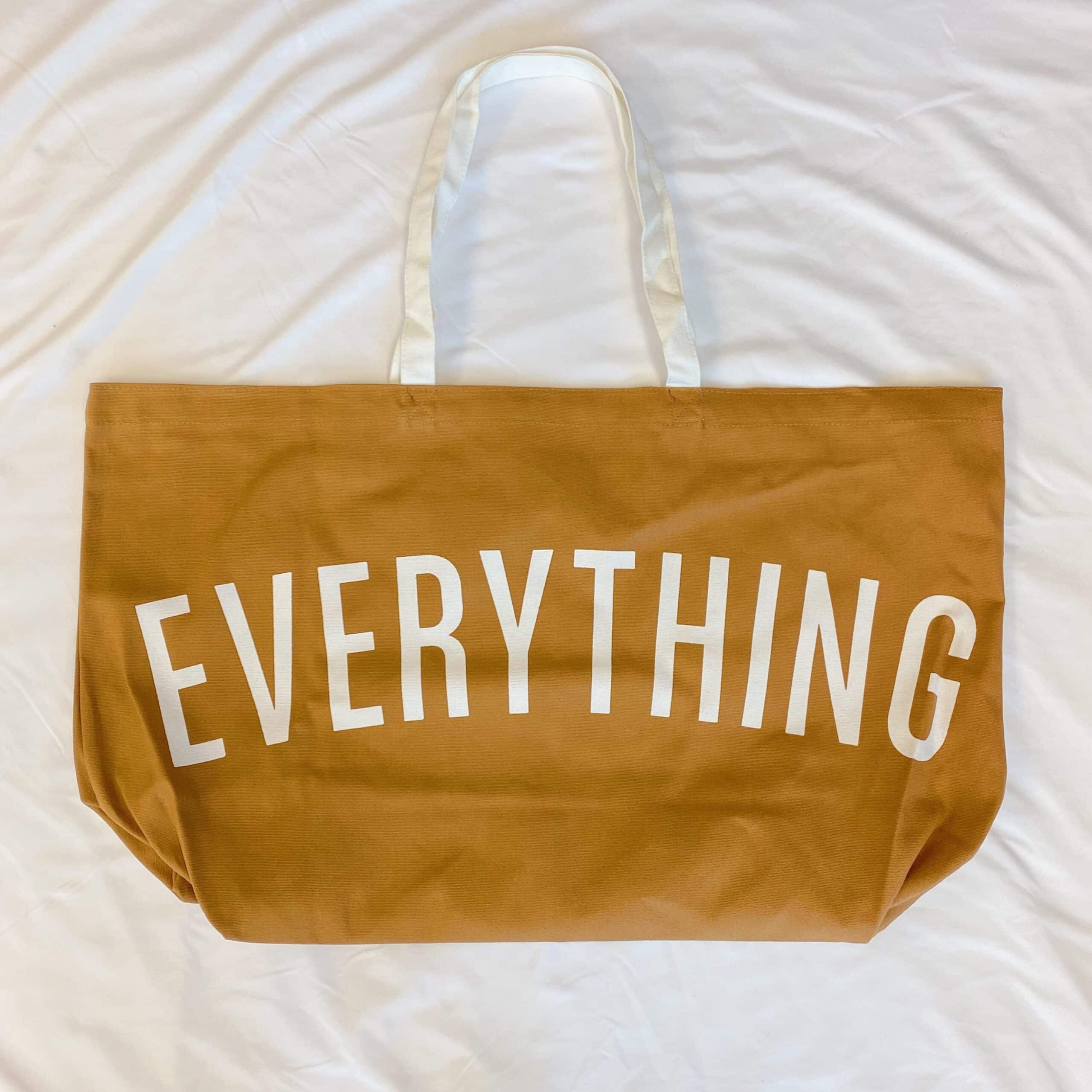 This tote can fit anything and everything! Made from great quality canvas material and detailed with a nice font “EVERYTHING”.