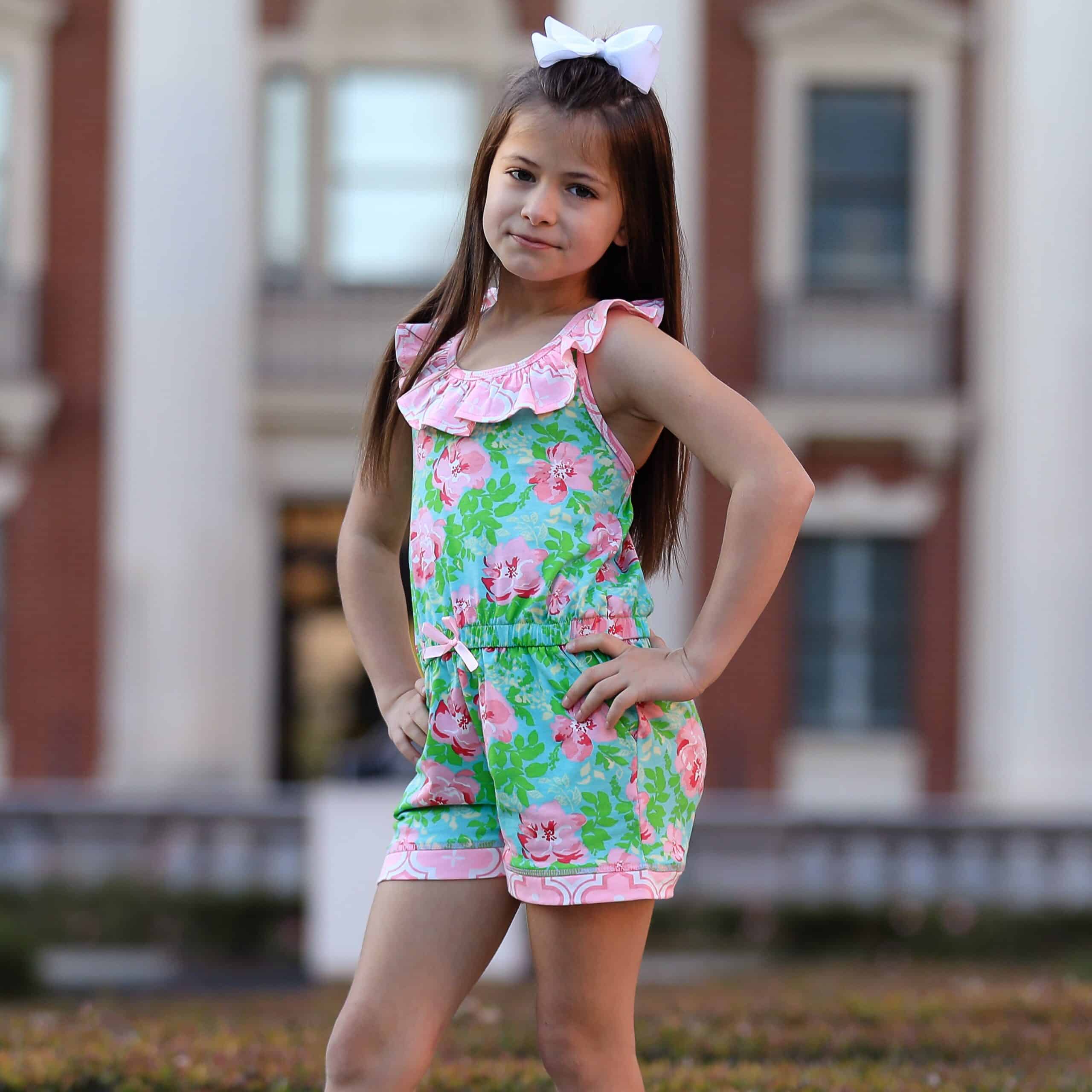 AnnLoren fashion forward FLORAL AND ARABESQUE prints big girl tween and little girls style jumpsuit. Trendy & comfortable rompers with POCKETS for any season and occasion. Criss Cross stretchy straps in the back. Elastic waist line with bow at center. Very flattering and comfortable. The 95% high quality Egyptian cotton and 5% stretchy lycra fabric is SUPER soft and comfortable. Premium dye’s ensure that your outfit won’t fade or run. Machine Washable.