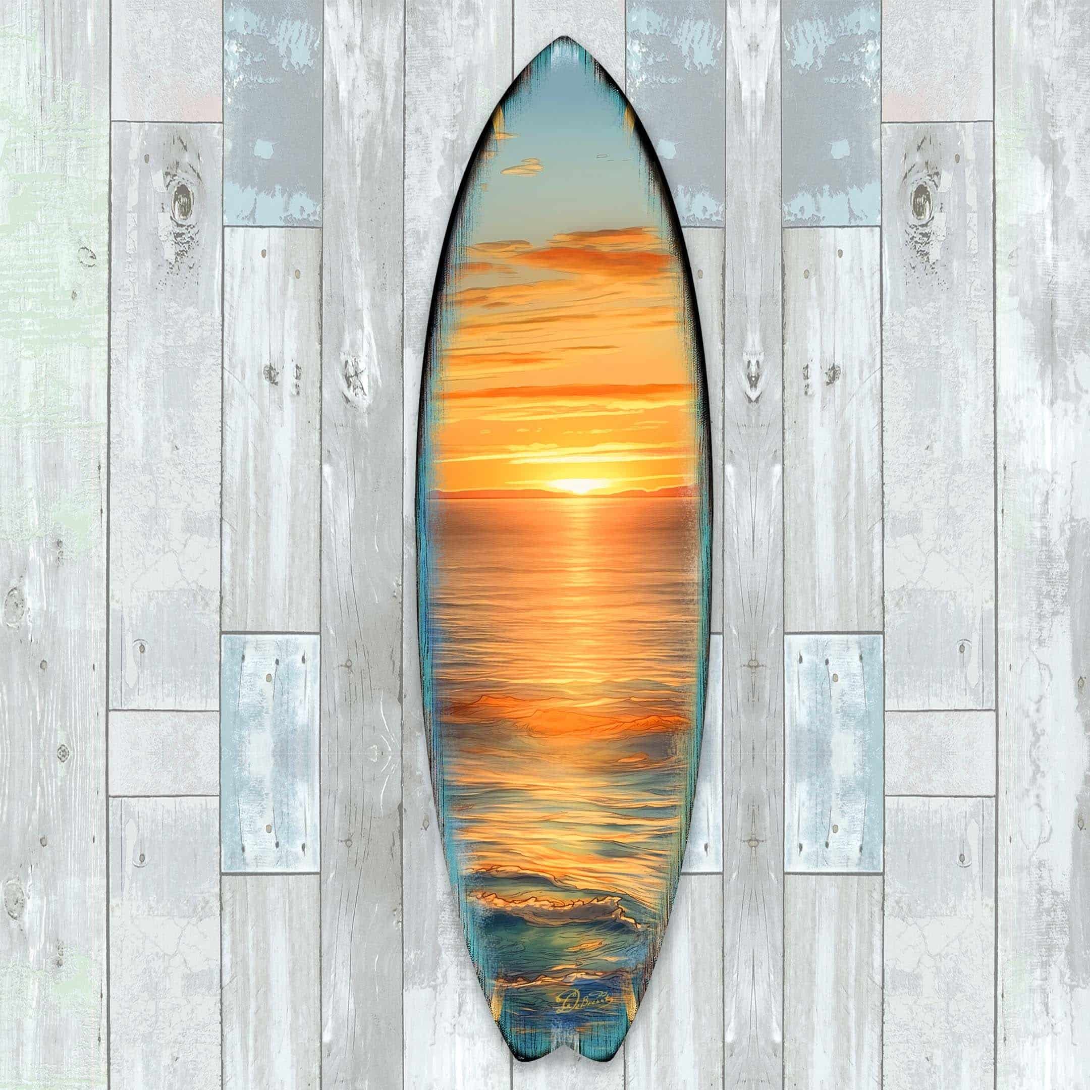 Golden Waves Surfboard Coastal Wall Art