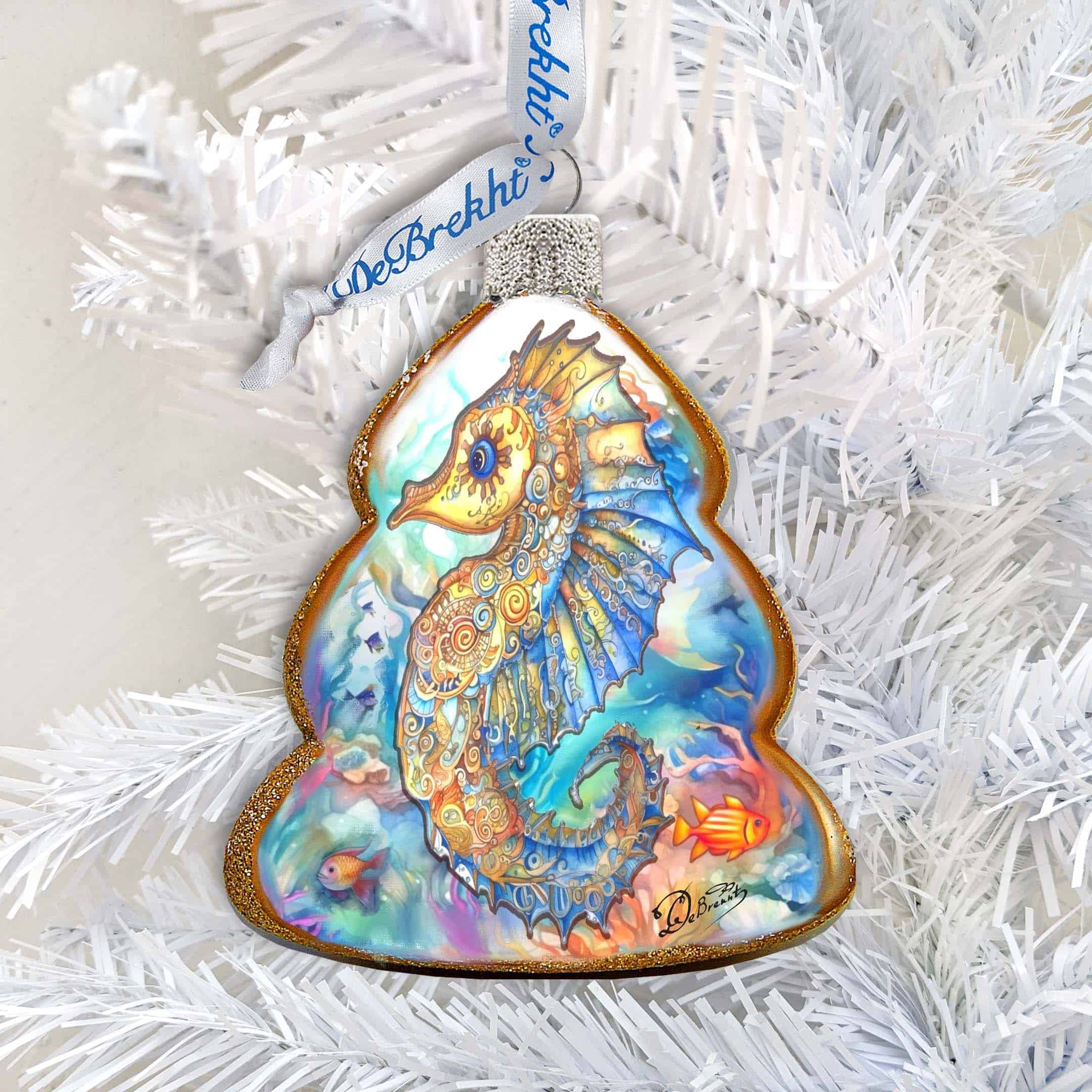 Holiday Coastal Decor – Seahorse Keepsake Glass Ornaments by G. Debrekht – Coastal Holiday Decor – 777398