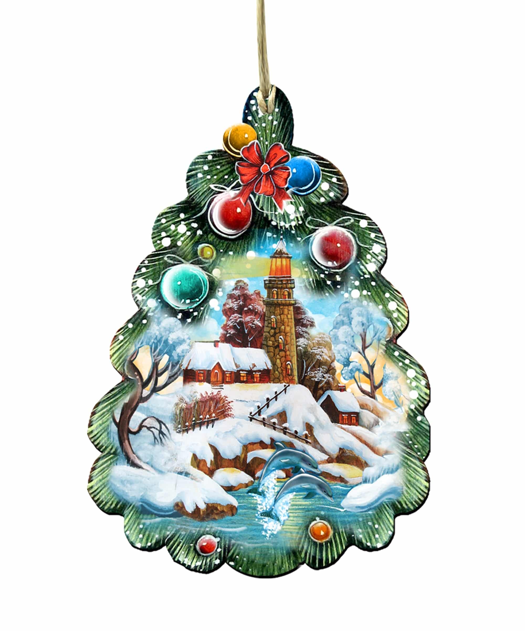Lighthouse Tree Christmas Door Decor by G. DeBrekht – Coastal Holiday Decor – 8119185H