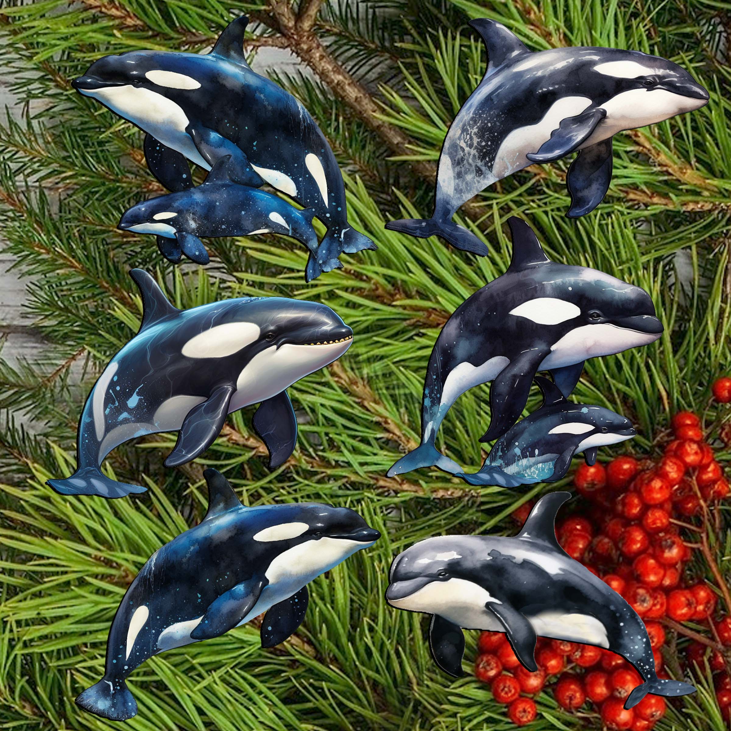 Majestic Orcas Clip-On Eco Wood Decorative Ornaments Set of 6 by G. Debrekht – Wildlife Decor – 8090102C-S6