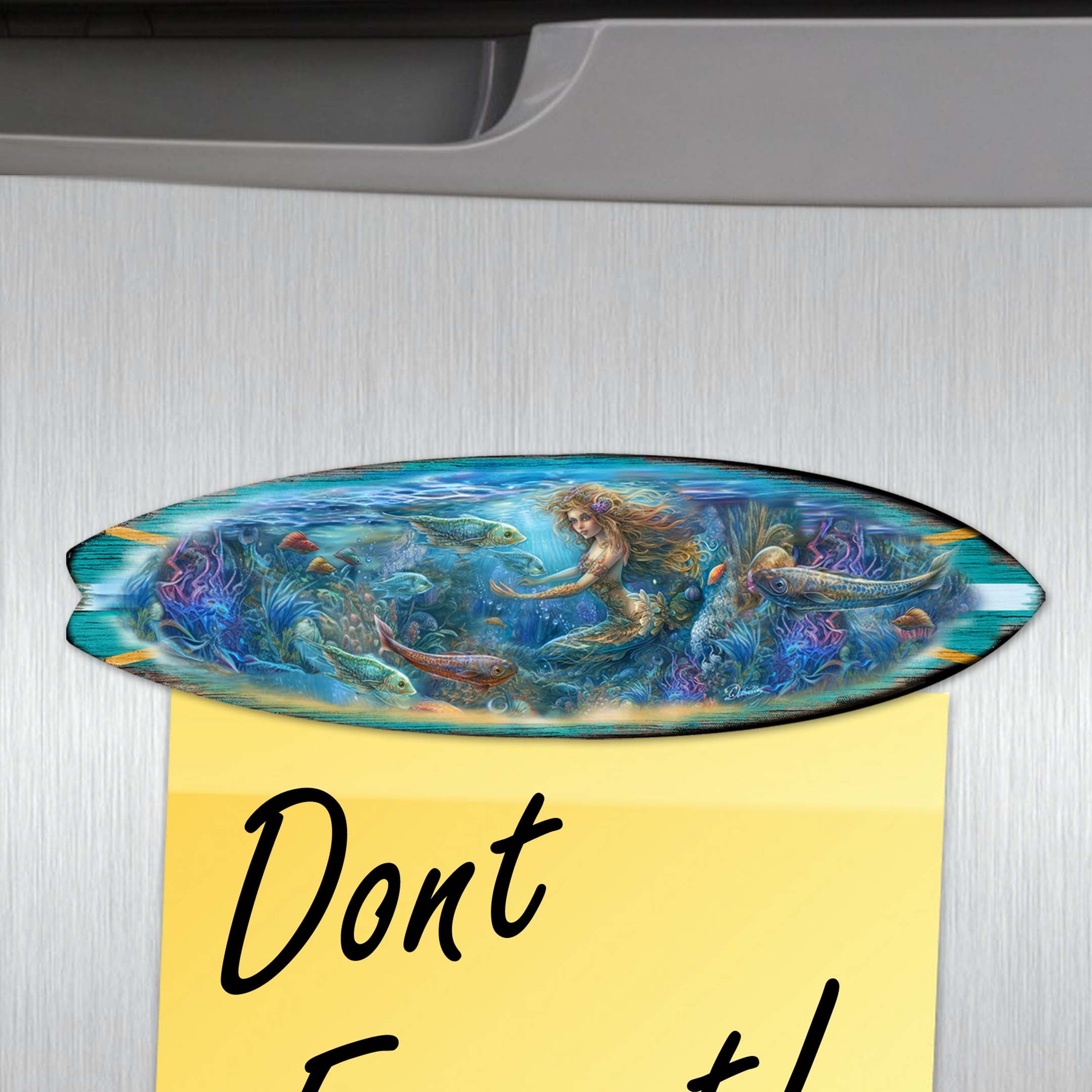Enhance your coastal Decor with these beautifully crafted Ocean Style Surfboards Decorative eco wooden Magnets by G. Debrekht. Made with high-quality materials, this set of 6 magnets will add a touch of nautical charm to any magnetic surface. Perfect for surfers and beach lovers alike.
