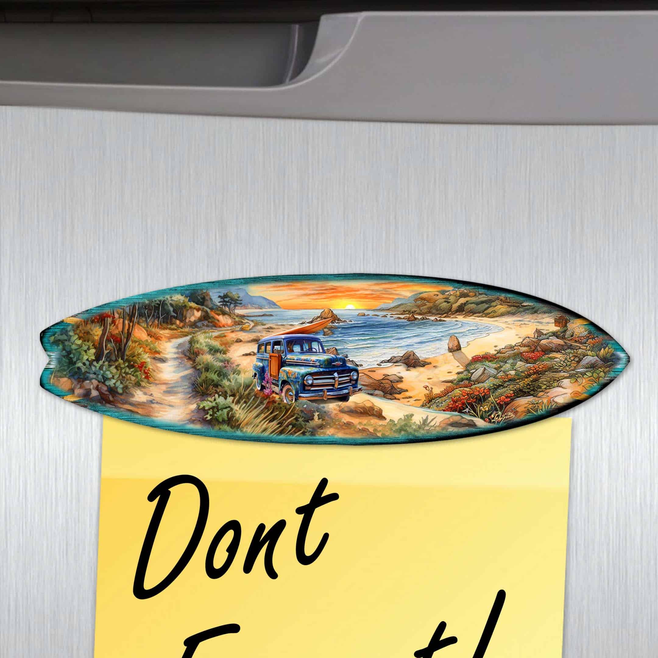 Upgrade your coastal Decor with these beautiful Ocean View Surfboards Decorative eco wooden Magnets by G. Debrekht. This set of 6 magnets adds a touch of seaside charm to any space. Made from high-quality eco wood, they are both durable and visually appealing. Perfect for those who love the beach or surf culture.