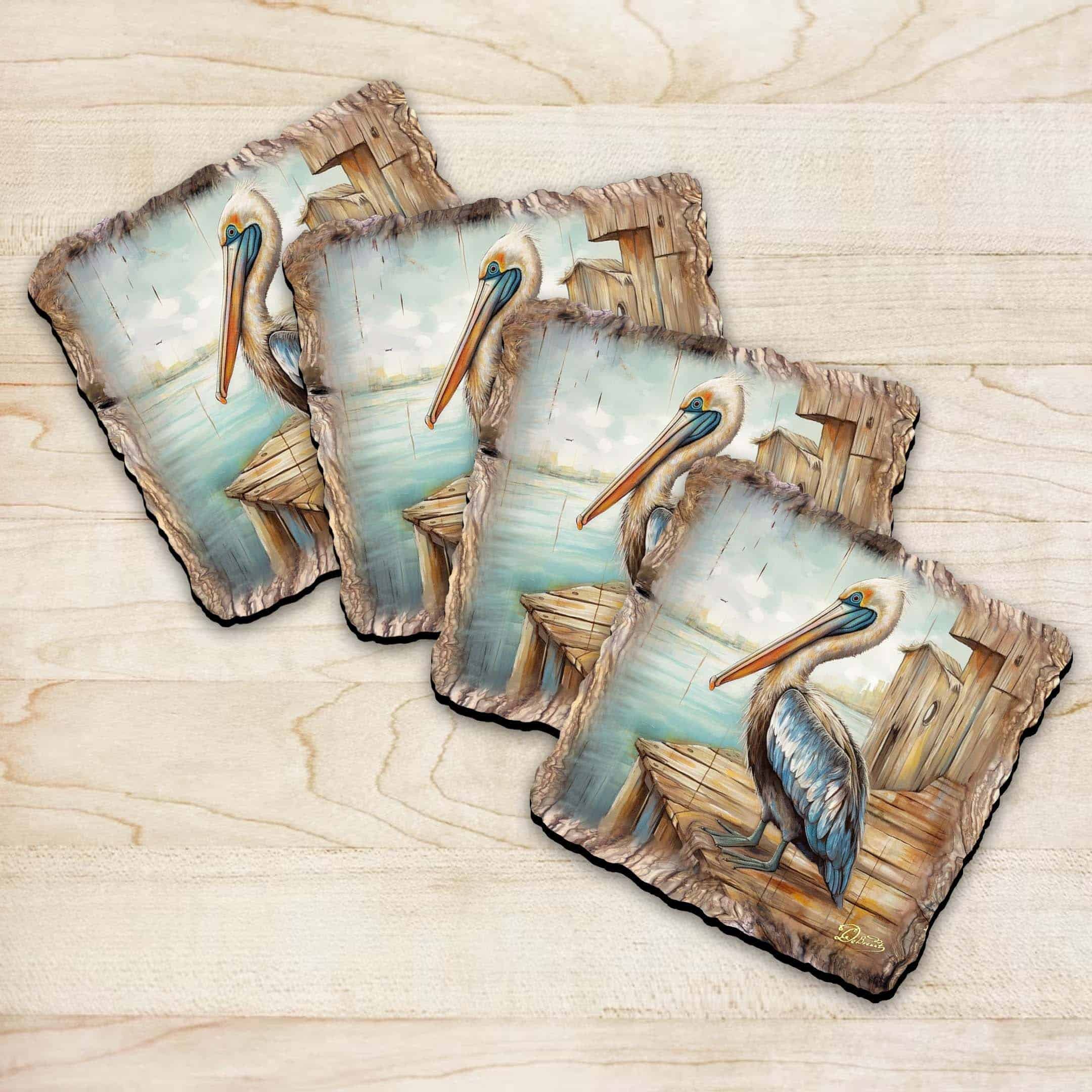 Pelican Wooden Cork Coasters Gift Set of 4