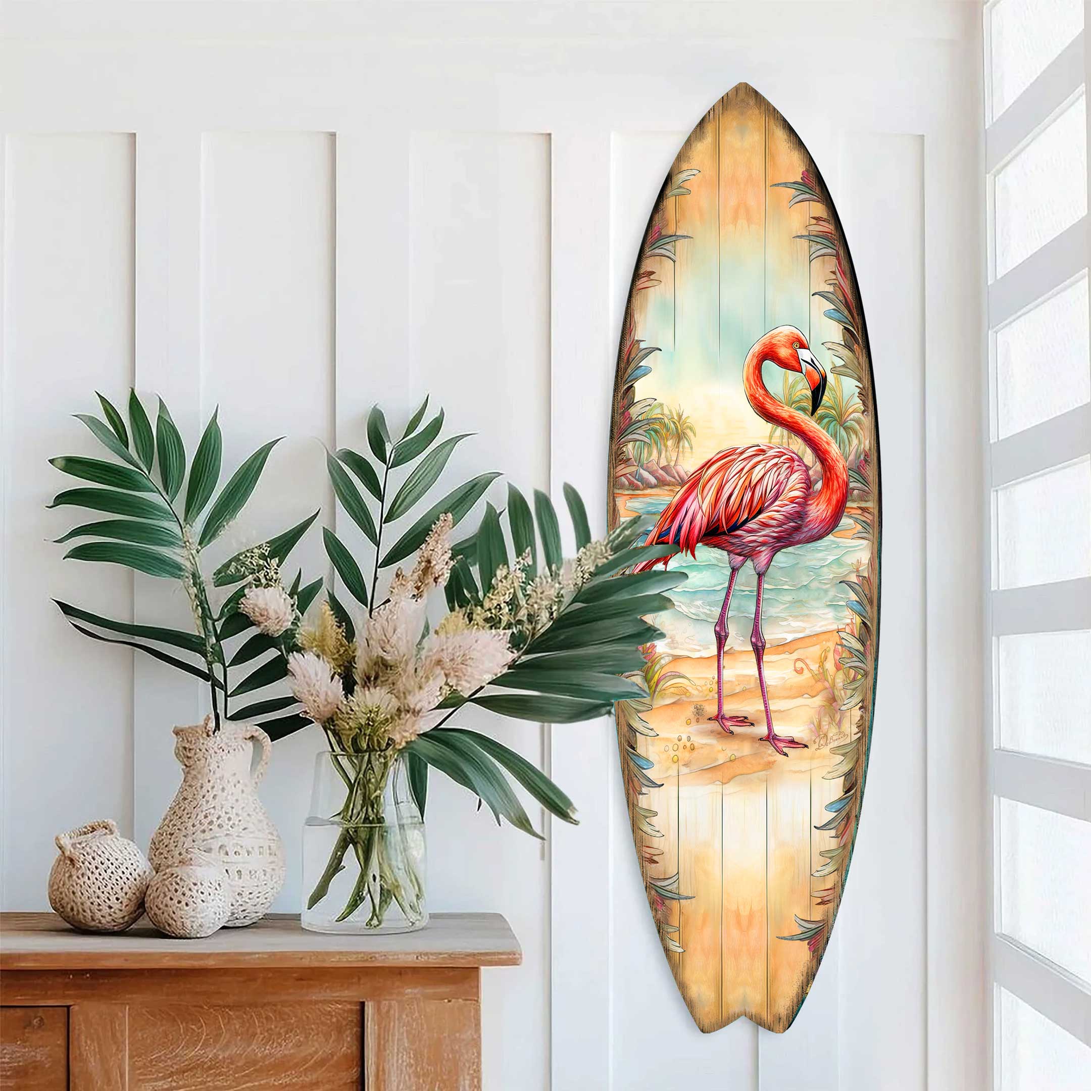 Part of our bestselling Surfboard Wall Art Collection, this flamingo wall hanging is ideal for those who want to express their love for seaside décor, flamingo home accents, and relaxed coastal living.