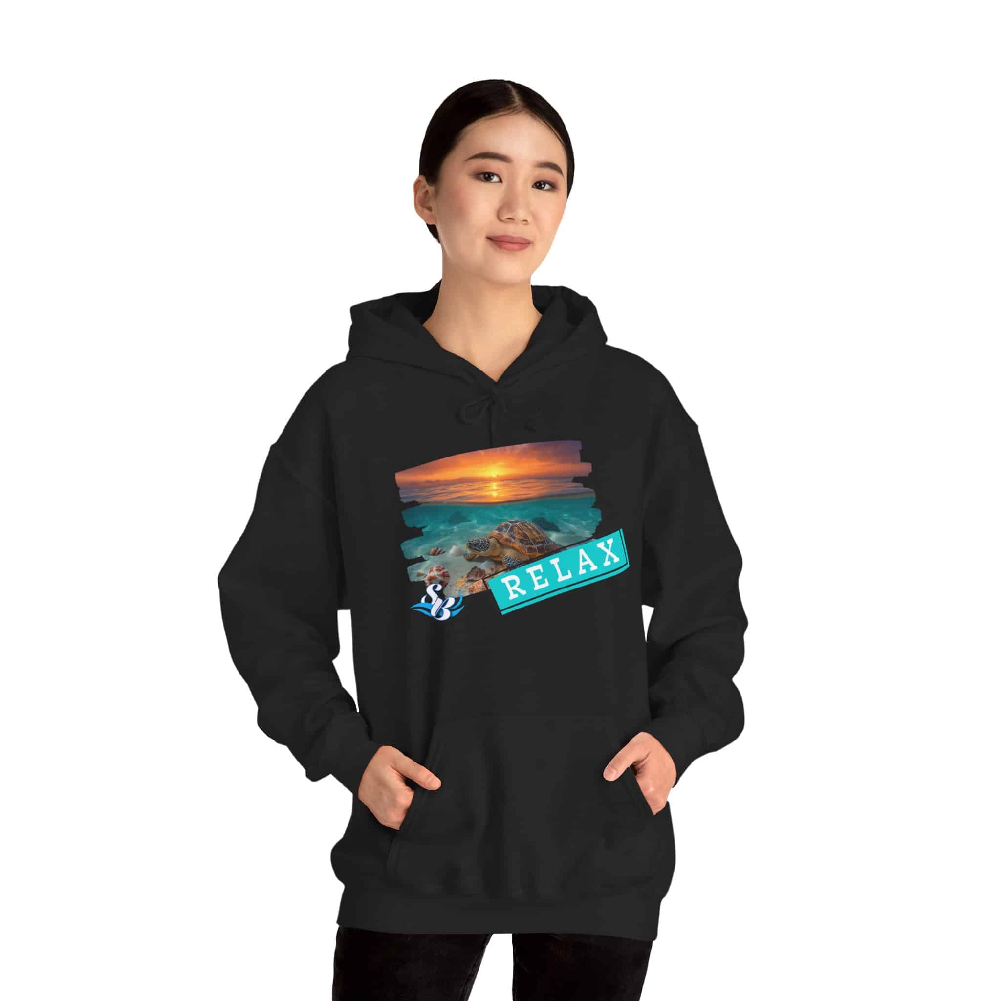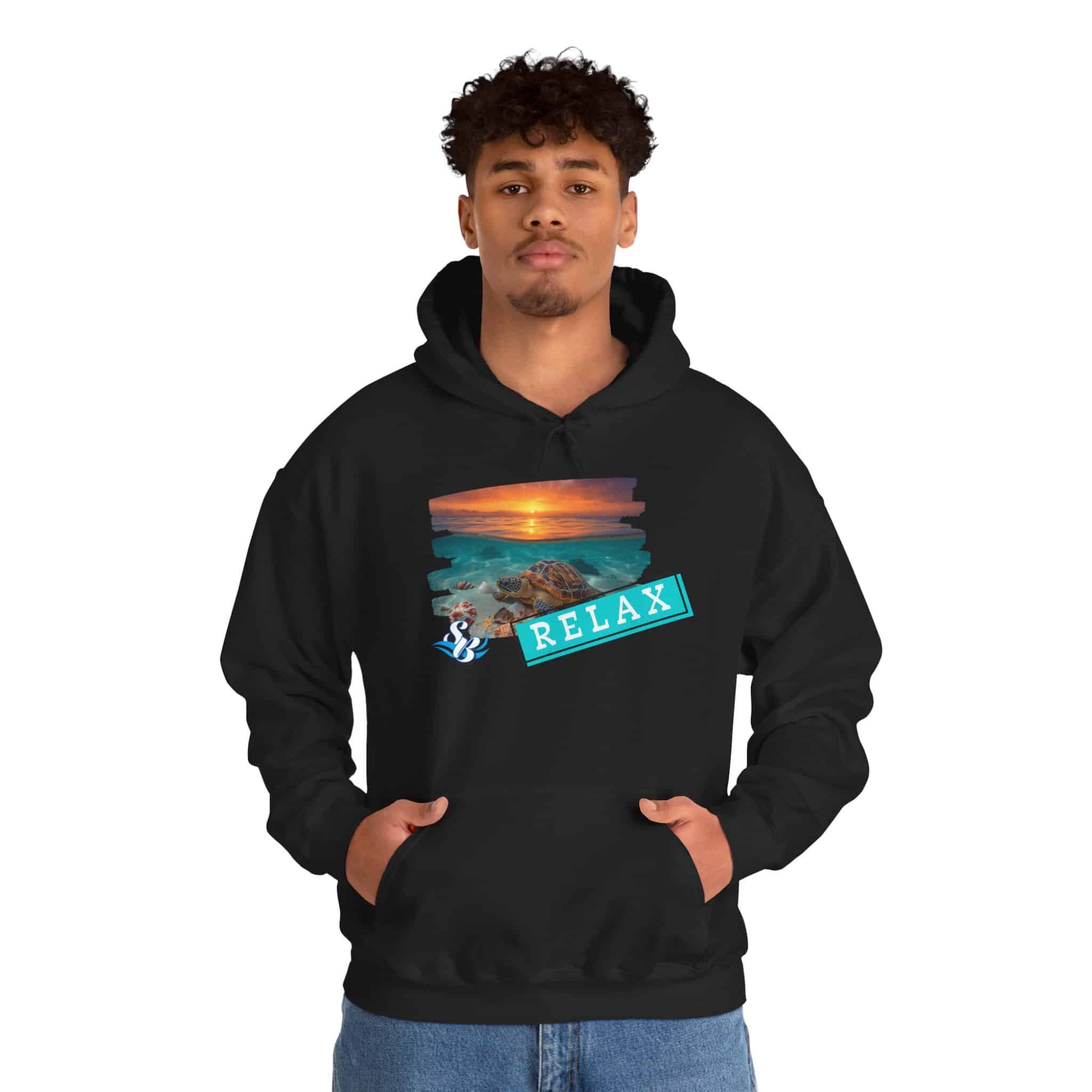 Find your calm in this cozy Relax graphic hoodie, featuring a sunset-and-rocks design with a soothing teal reminder to slow down. Made from a warm yet breathable cotton/poly blend, it’s perfect for chilly mornings, cool beach nights, and everyday comfort.