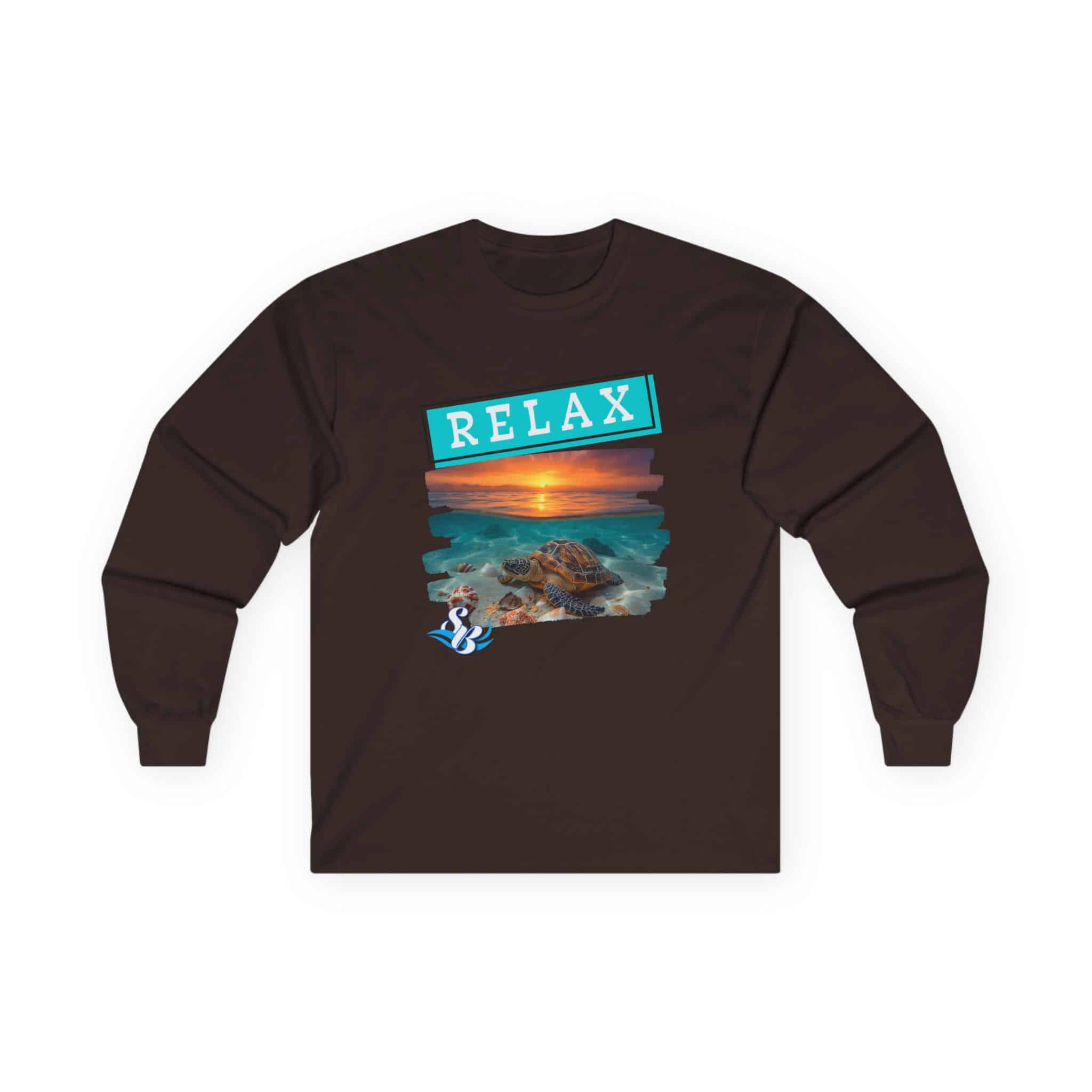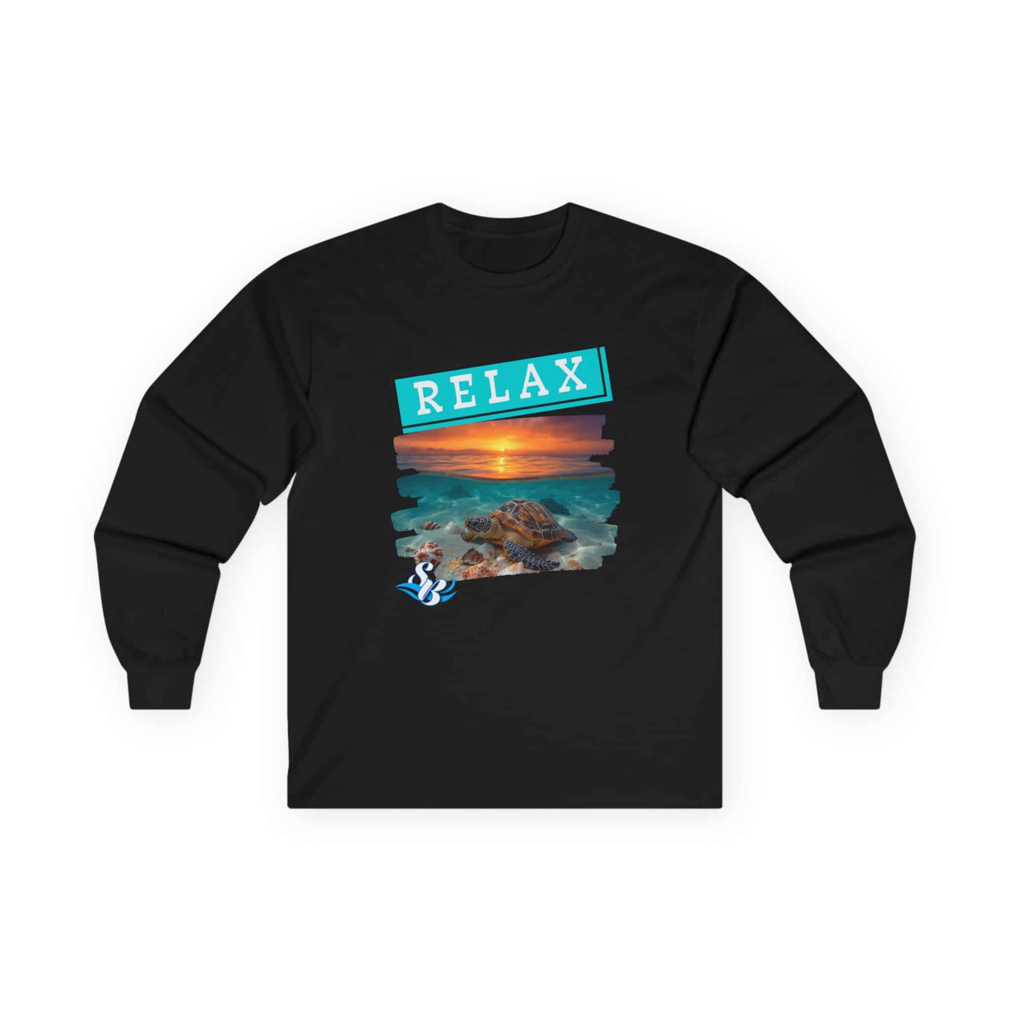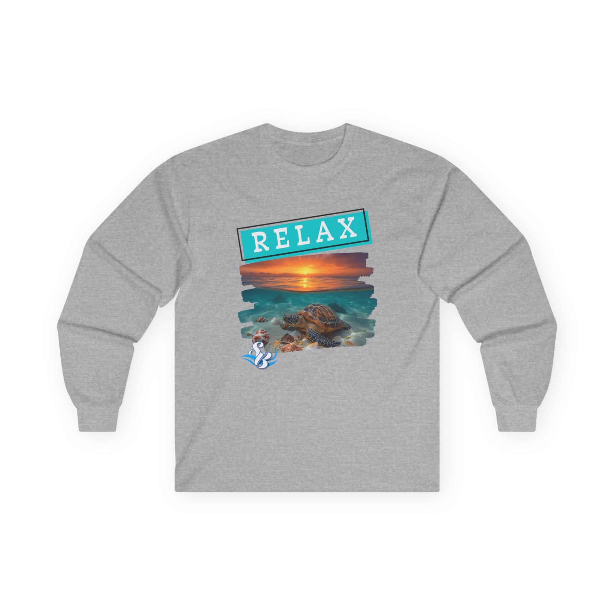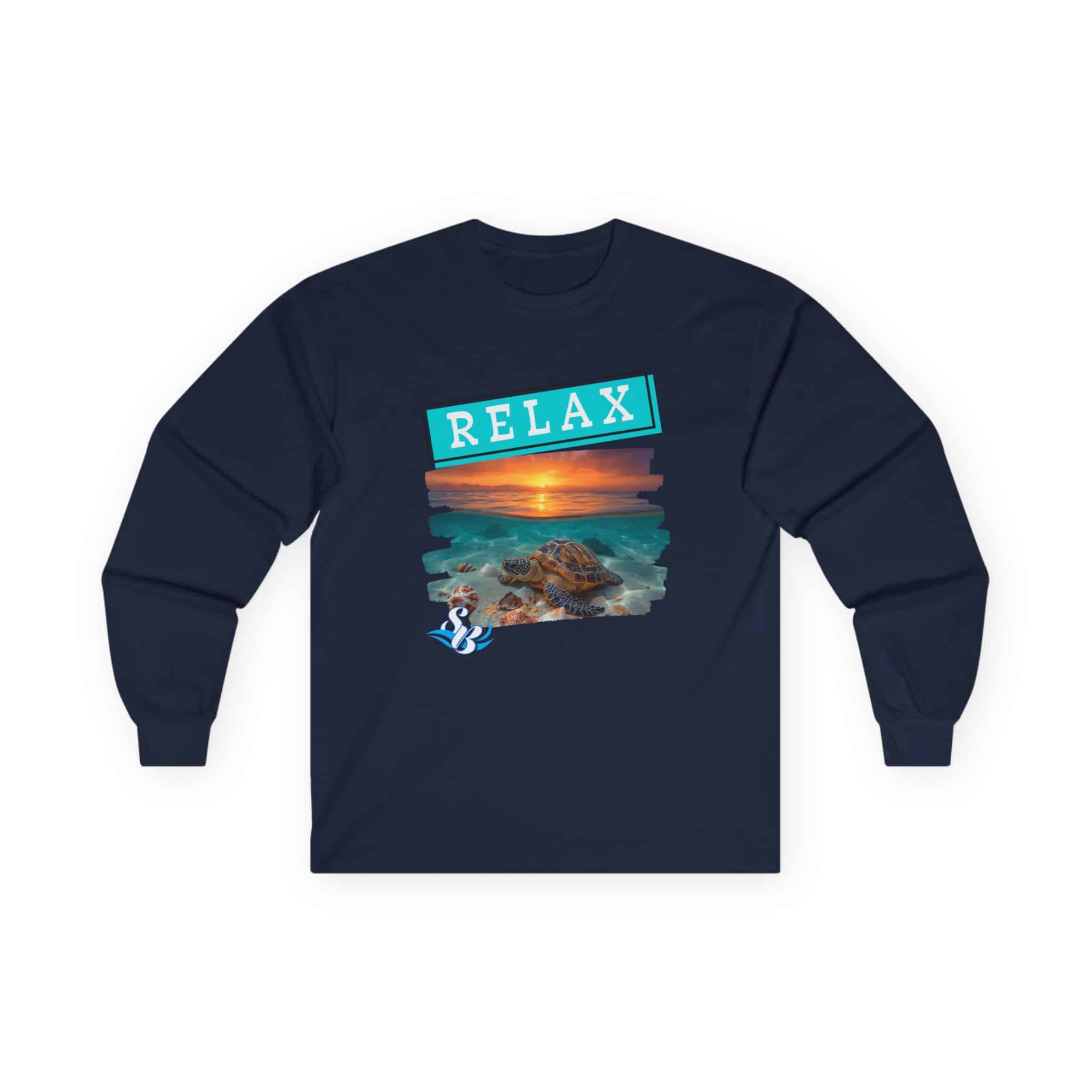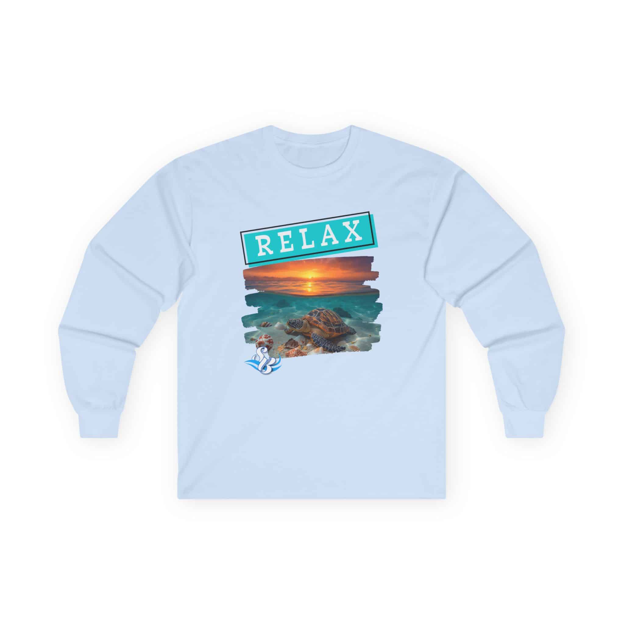 A soft, vintage-feeling long sleeve that carries the calm of a seaside sunset. Breathable medium-weight cotton with a slightly thicker hand invites you to pull it on for cool mornings and slow evenings. The front print layers a warm orange sunset over textured ocean stripes with a teal “RELAX” banner — a visual pause that fits easily into weekend beach walks, porch coffee, or packing for a coastal road trip. Classic cut and ribbed collar hold their shape while the tubular knit and shoulder tape keep the silhouette clean and durable. Sized to a classic fit (note: runs smaller than usual).