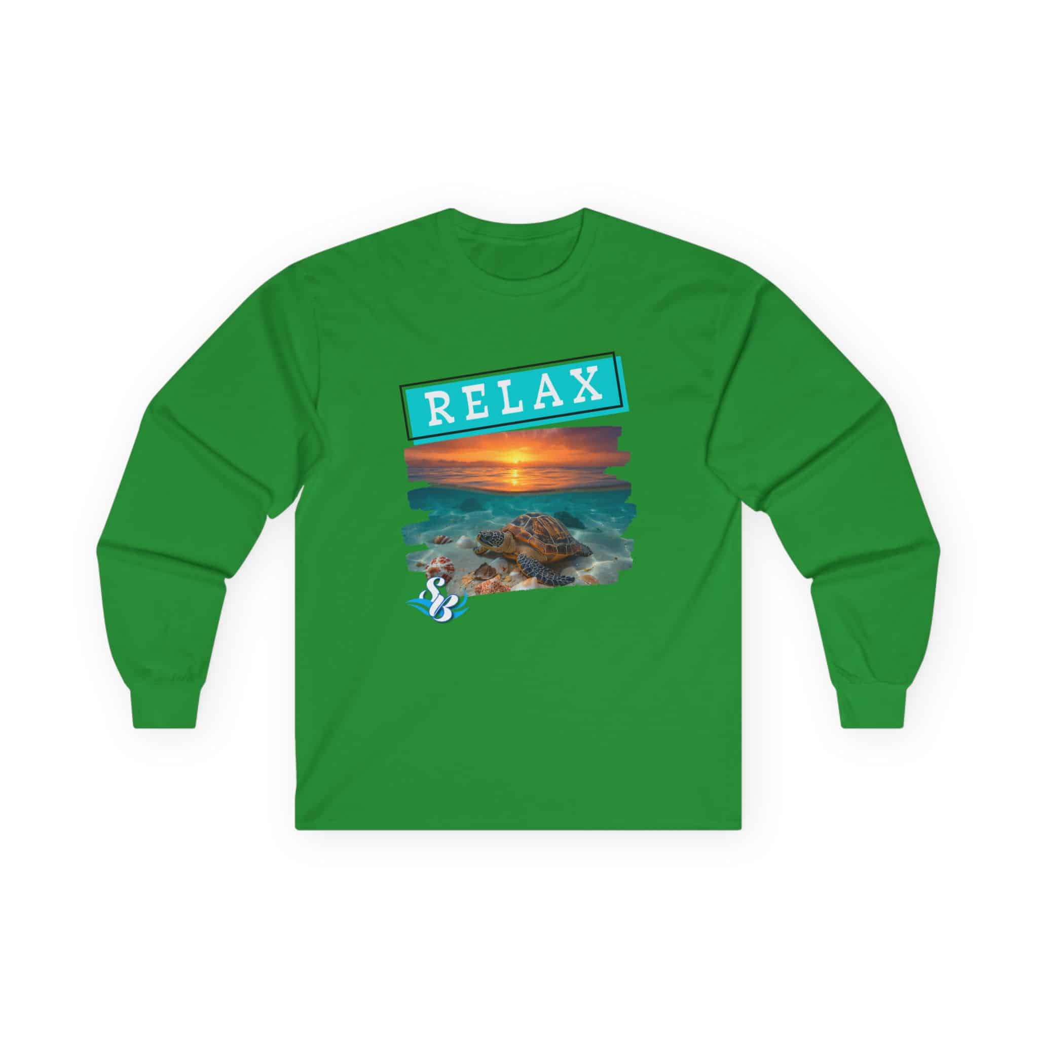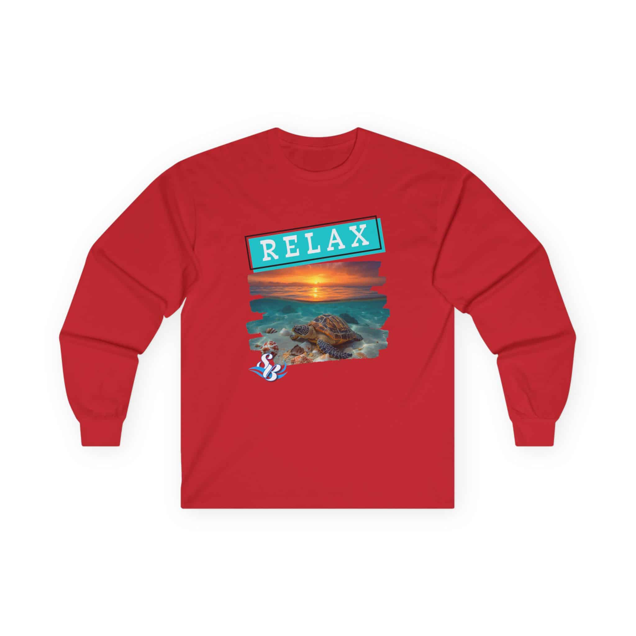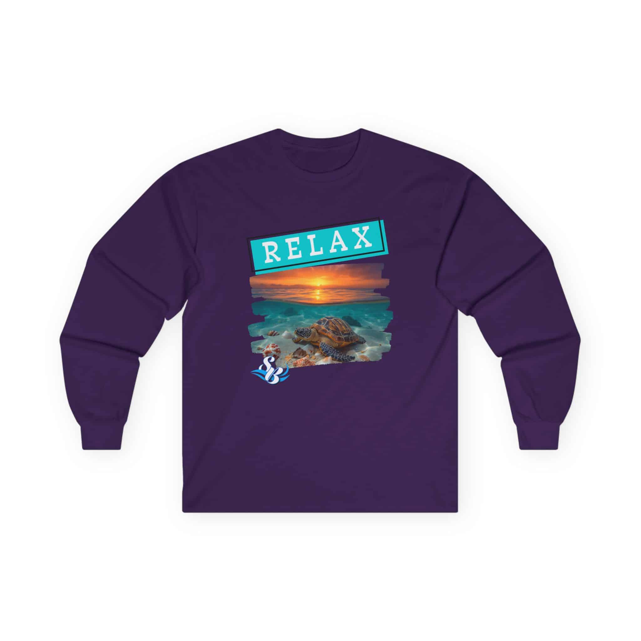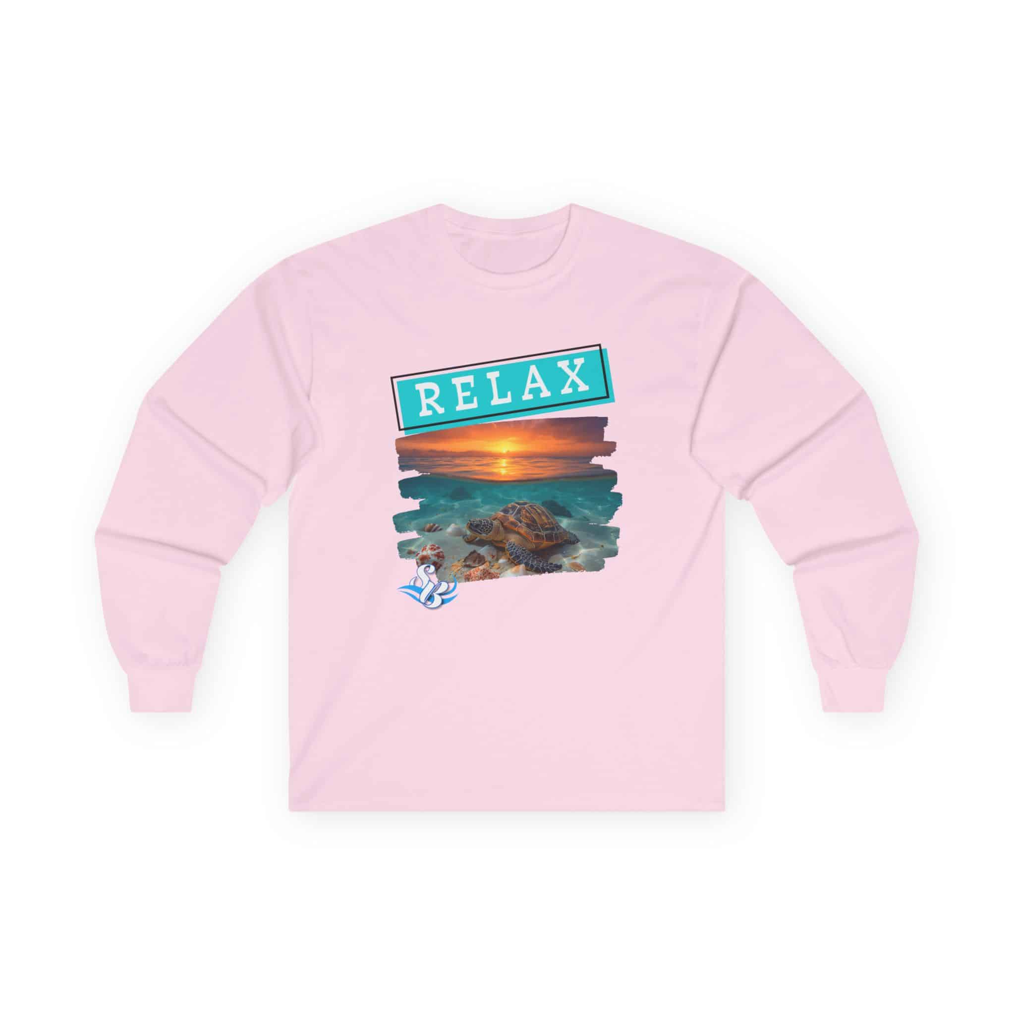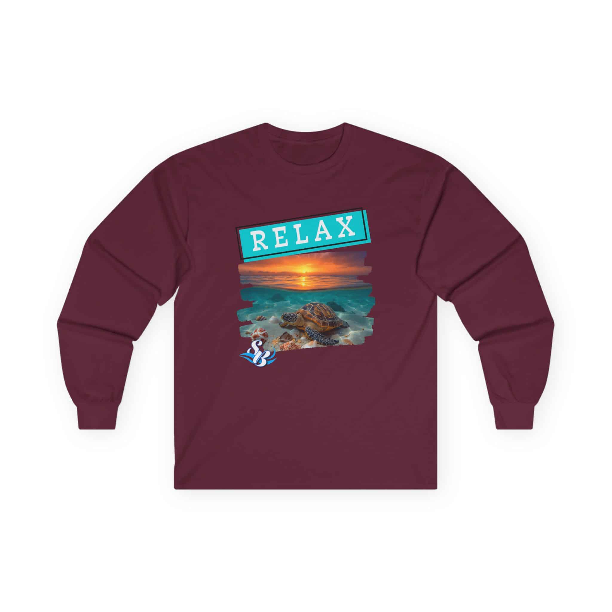 A soft, vintage-feeling long sleeve that carries the calm of a seaside sunset. Breathable medium-weight cotton with a slightly thicker hand invites you to pull it on for cool mornings and slow evenings. The front print layers a warm orange sunset over textured ocean stripes with a teal “RELAX” banner — a visual pause that fits easily into weekend beach walks, porch coffee, or packing for a coastal road trip. Classic cut and ribbed collar hold their shape while the tubular knit and shoulder tape keep the silhouette clean and durable. Sized to a classic fit (note: runs smaller than usual).