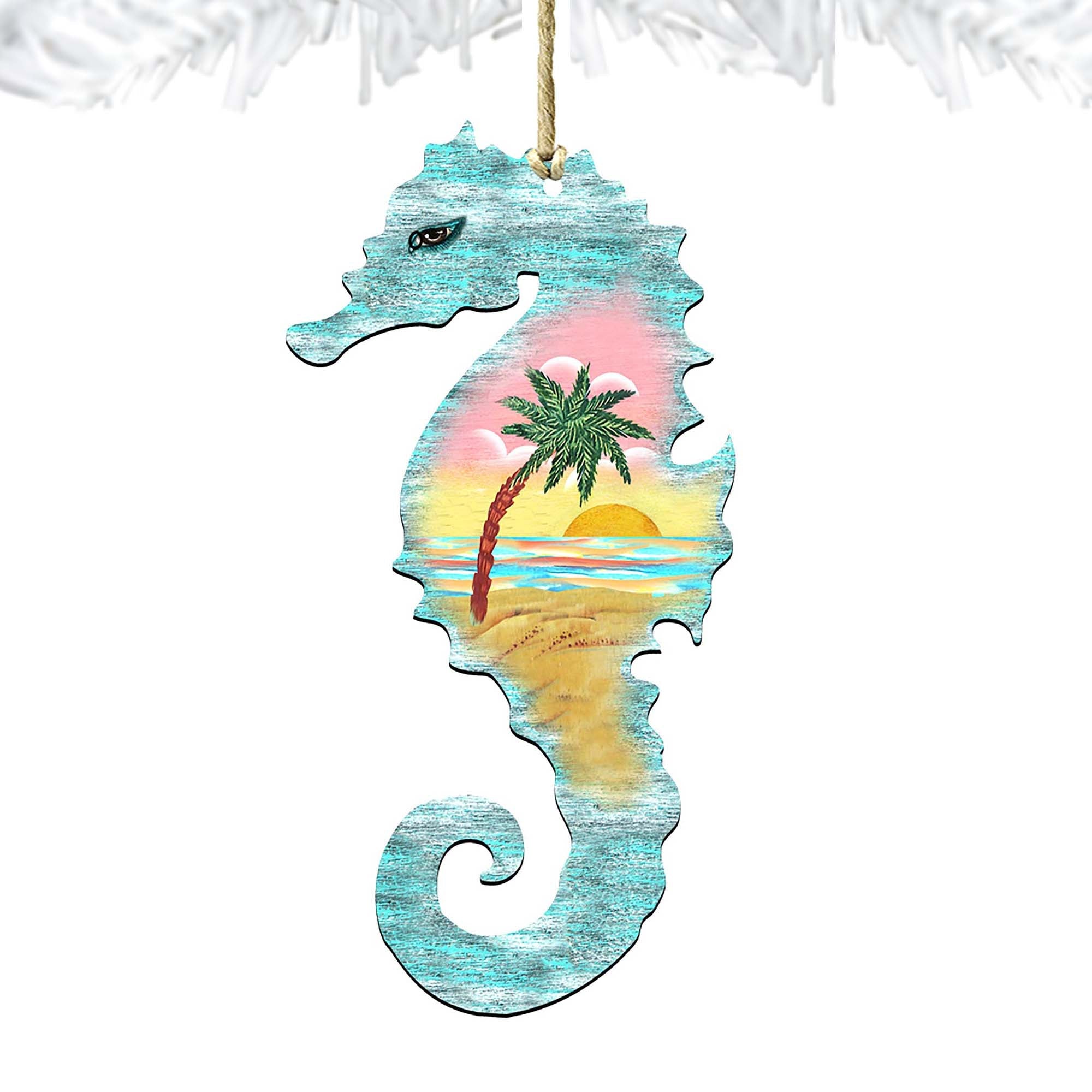 Our wooden Ornaments Set with Seahorse, Palm Trees will make a great gift this holiday season. Beautifully detailed to create a nostalgic look. High-quality sturdy and lightweight. Shop today for your Wooden Christmas Ornament handcrafted in the USA