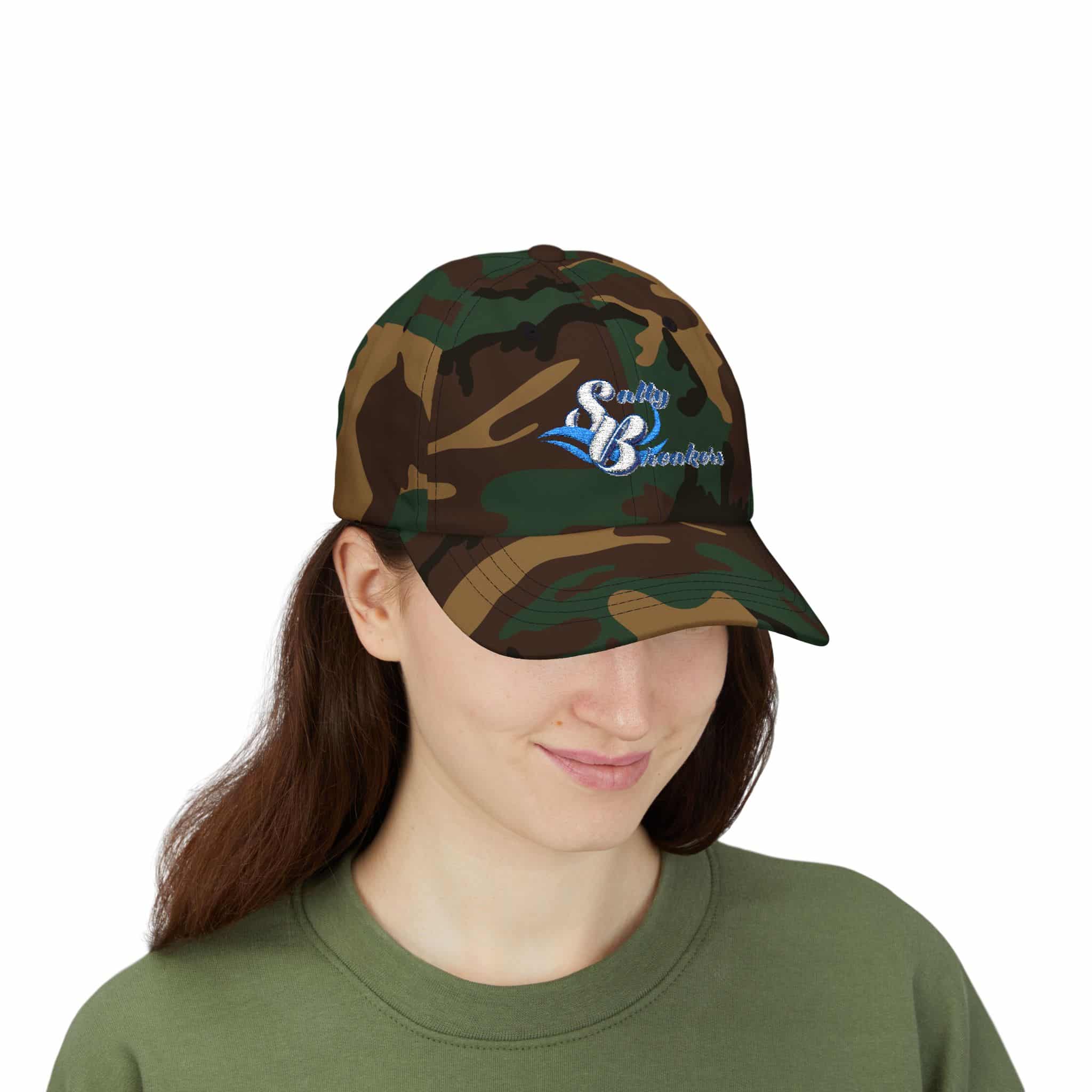 A lived-in dad cap with soft structure and thoughtful nautical embroidery. The low-profile, unstructured body settles comfortably on the head while the pre-curved Permacurv® visor keeps sun and glare at bay. Embroidered front lettering and a small wave motif at the back give this cap a seaside, crew-vibe — the kind of everyday accessory you reach for when you want to feel relaxed and ready for the water. The self-fabric hideaway strap with antique brass buckle lets you fine-tune the fit without sacrificing the cap’s clean silhouette. Lightweight cotton construction (with the green camo option blended with polyester) makes it easy to wear from morning coffee to dusk fishing runs.