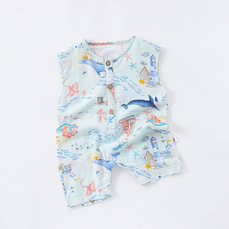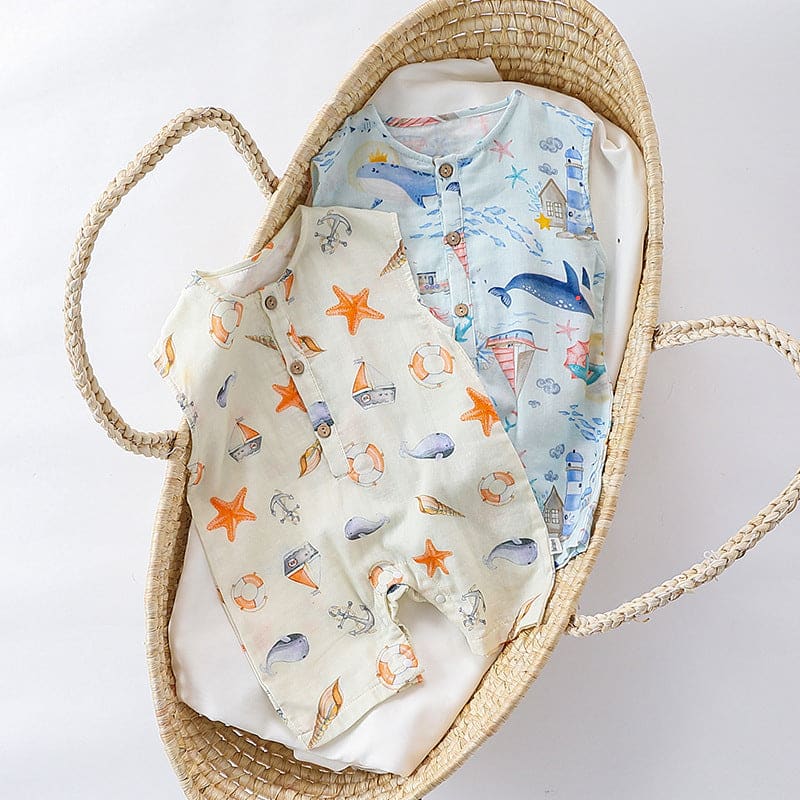 Keep your little one cool and comfy this summer with our adorable sleeveless bodysuit featuring a playful ocean animals pattern. Perfect for sunny days, this unisex design combines soft fabric with a fun, vibrant print that sparks imagination. Easy to wear and gentle on delicate skin, it’s an ideal choice for everyday adventures by the sea or at home. Dive into summer fun with this charming and practical outfit!