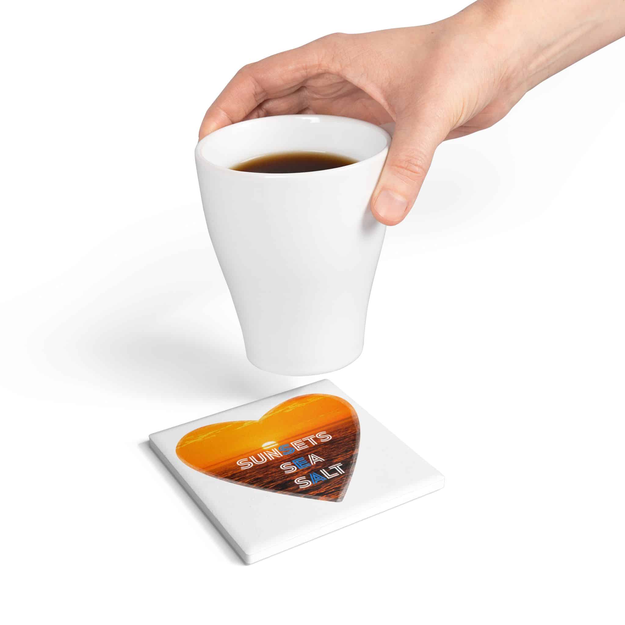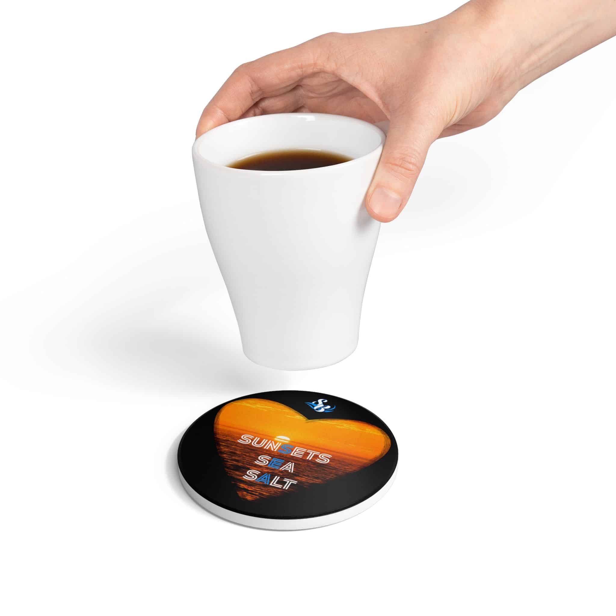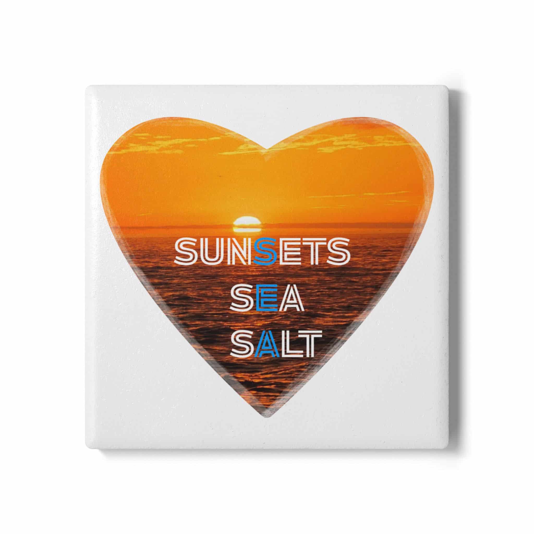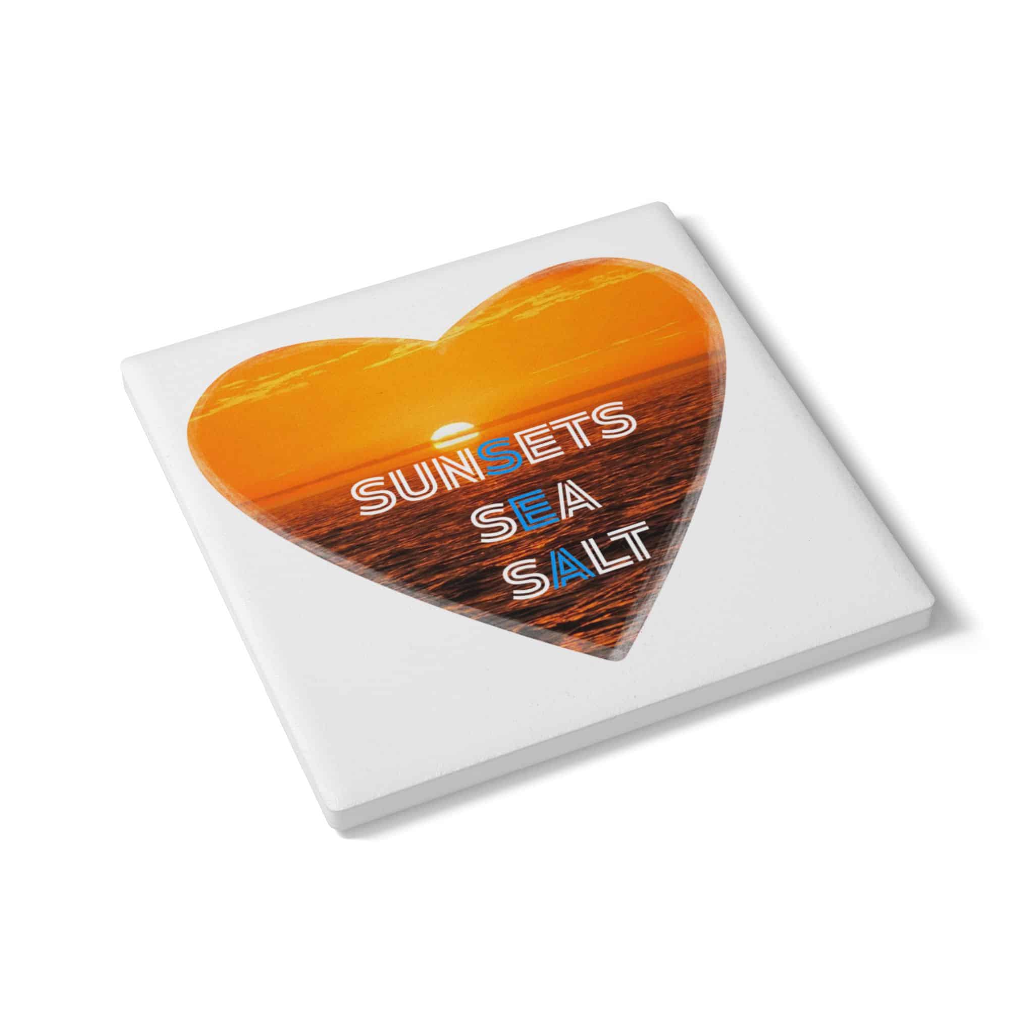 Sunsets Sea Salt Ceramic Coaster — Heart Sunset Beach Drink Coaster