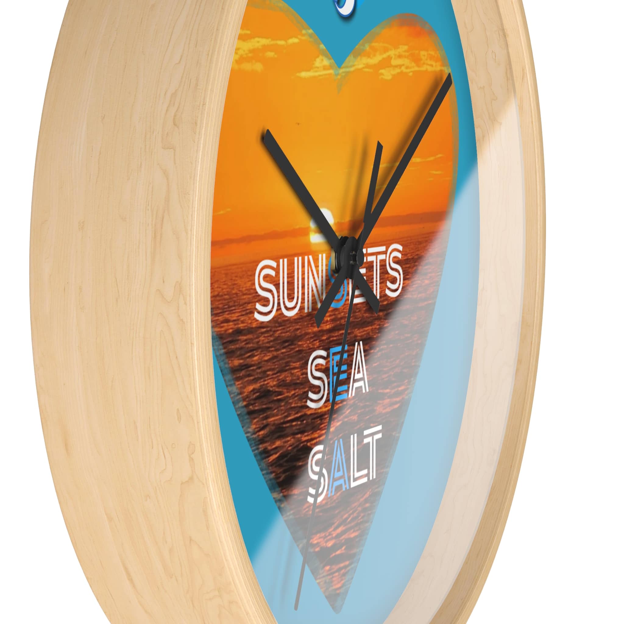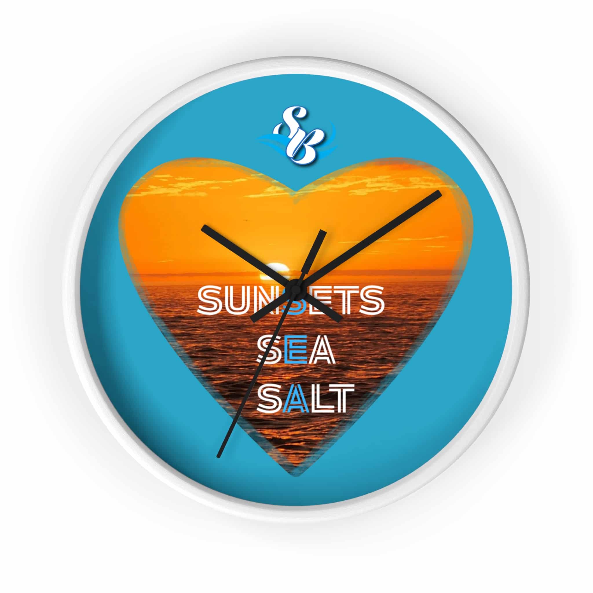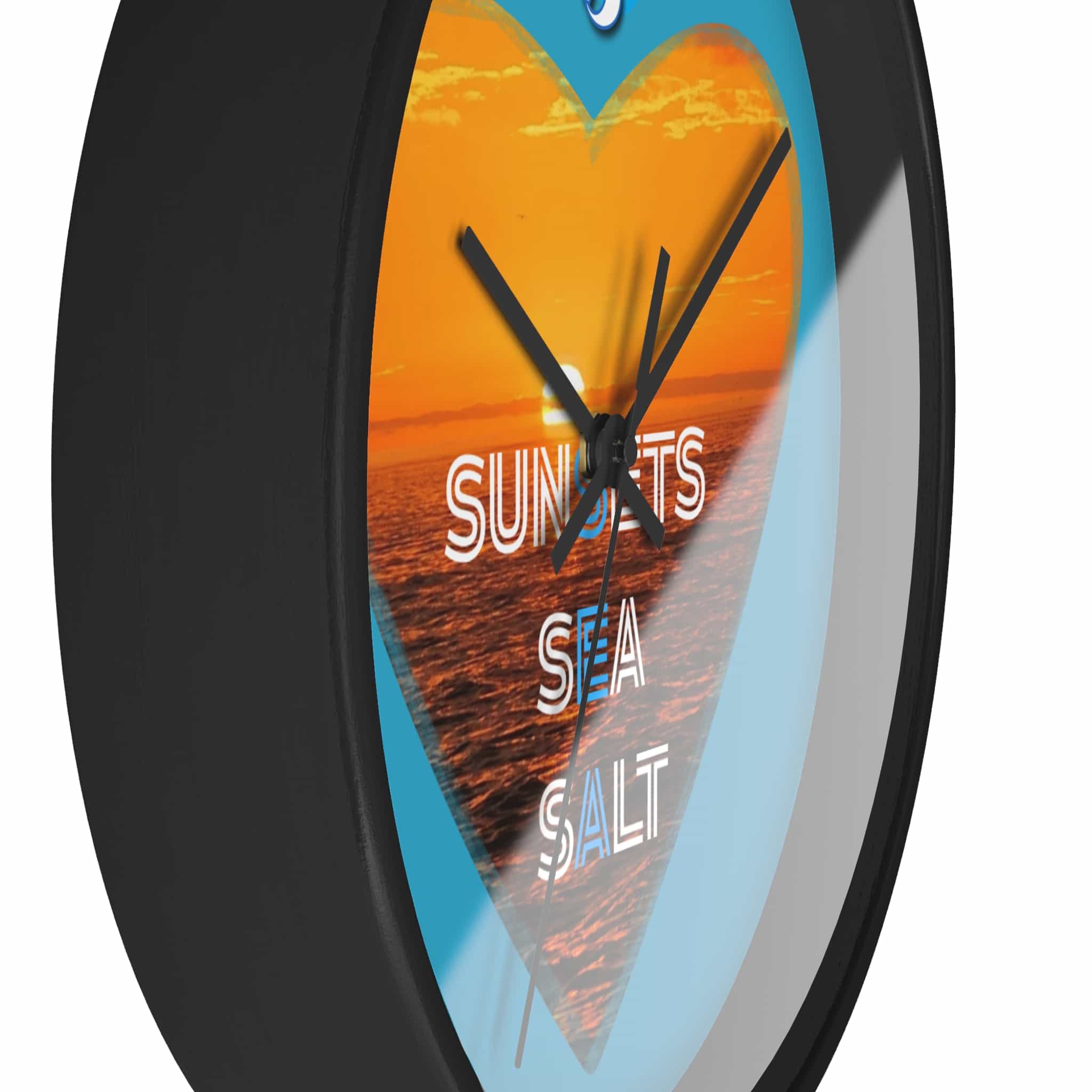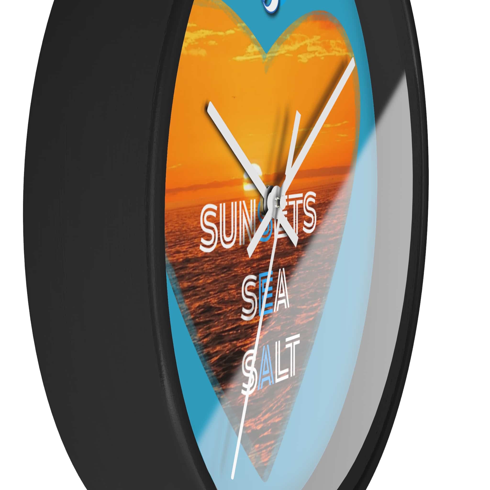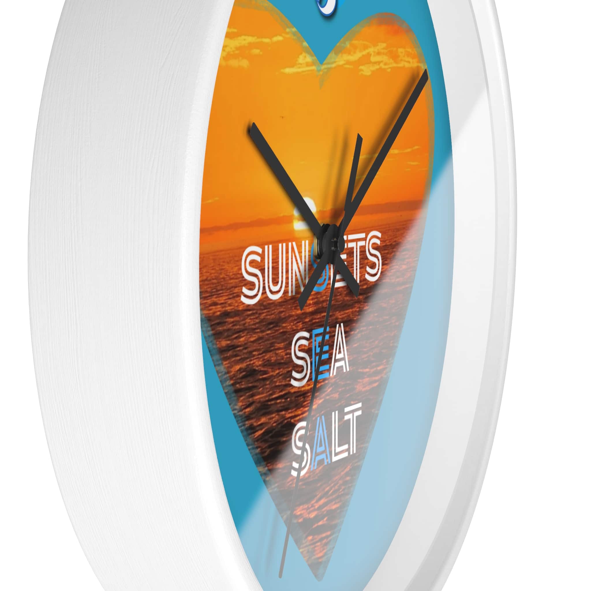 Wake up to the hush of an ocean evening. This 10″ wall clock carries a warm sunset captured inside a heart — molten orange waves framed by a bright turquoise field. The silent mechanism keeps your space calm while the plexiglass face and sharp digital print preserve the glow and texture of the sea. Hang it in a kitchen, hallway, or beach cottage to bring a steady, sun-dipped rhythm to moments that matter — quiet breakfasts, slow afternoons, and evenings spent reminiscing about shorelines.