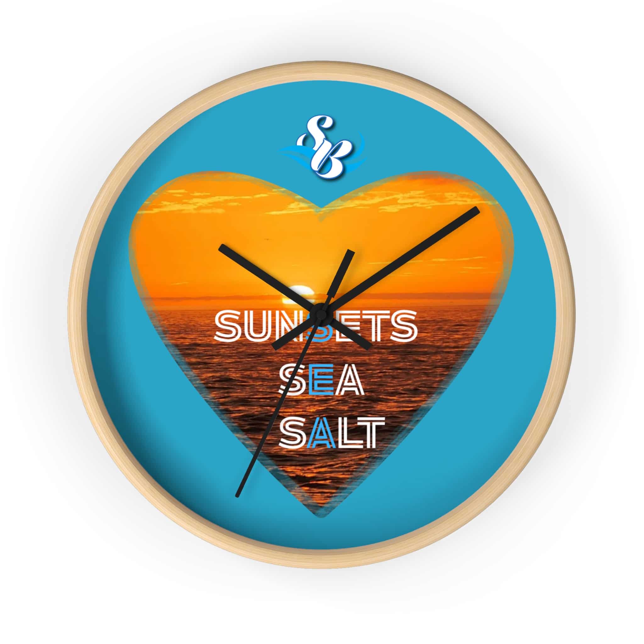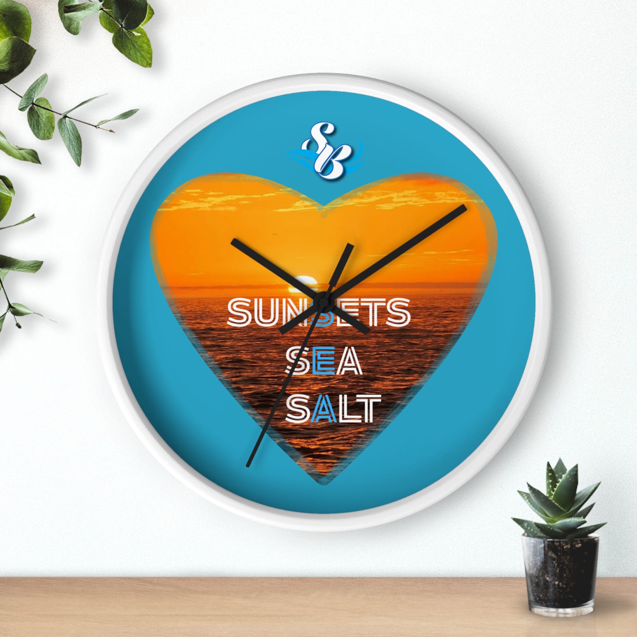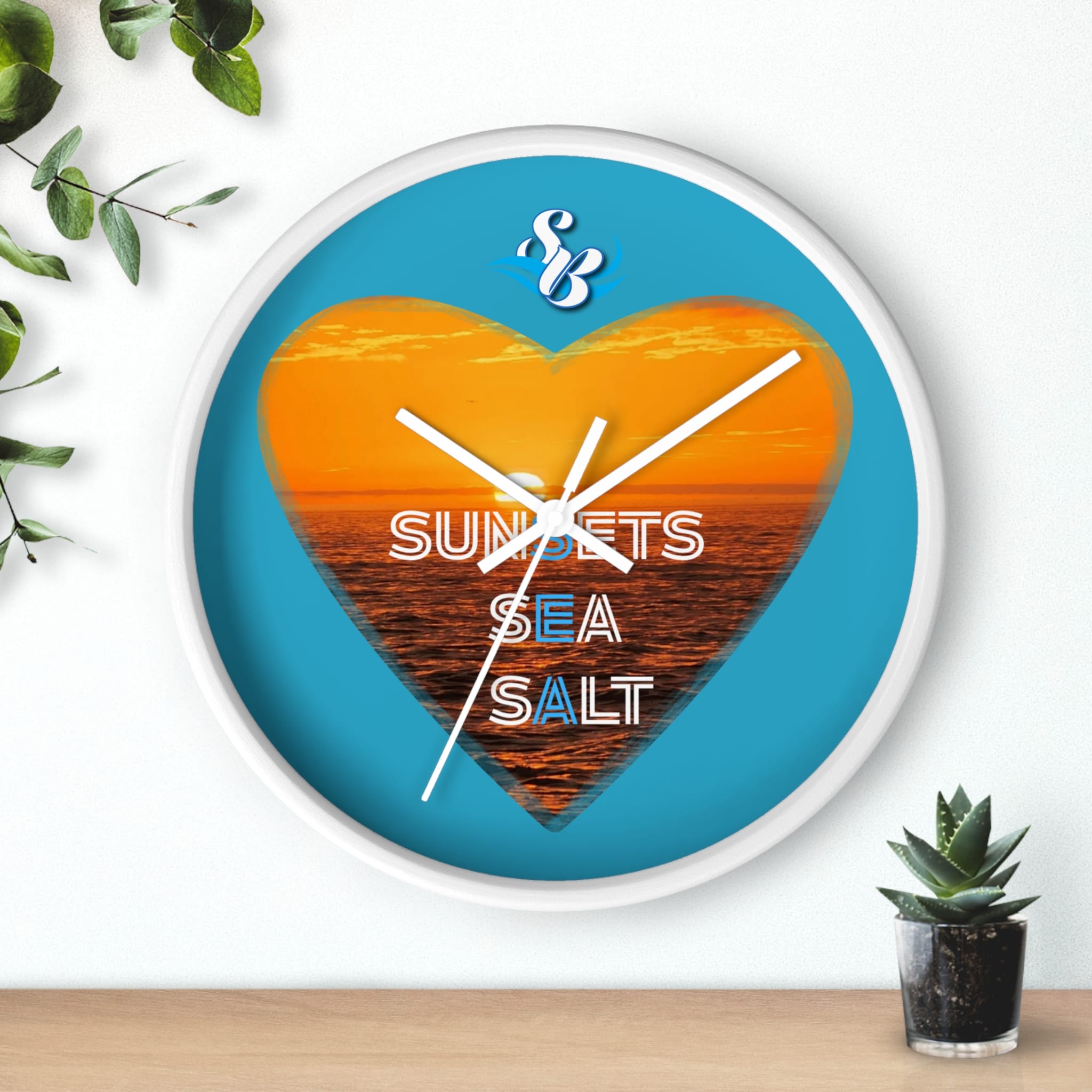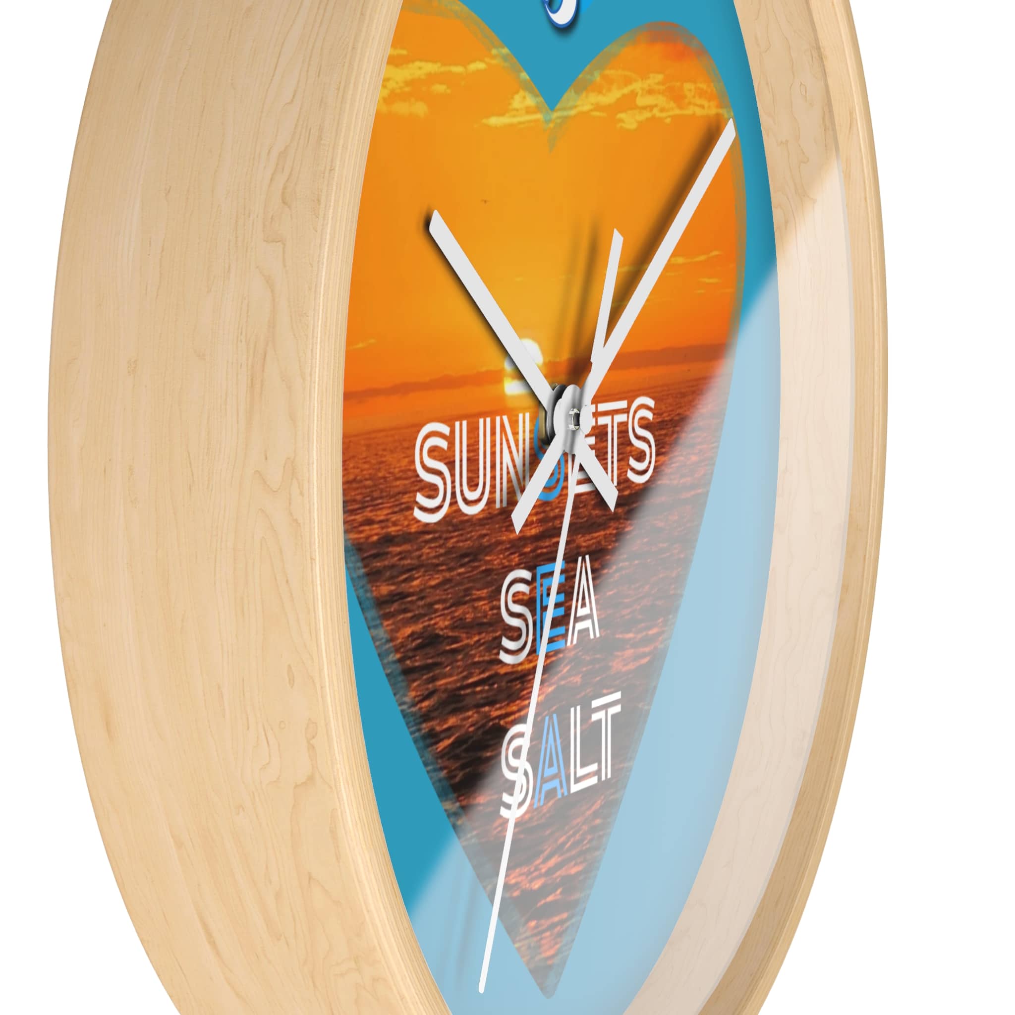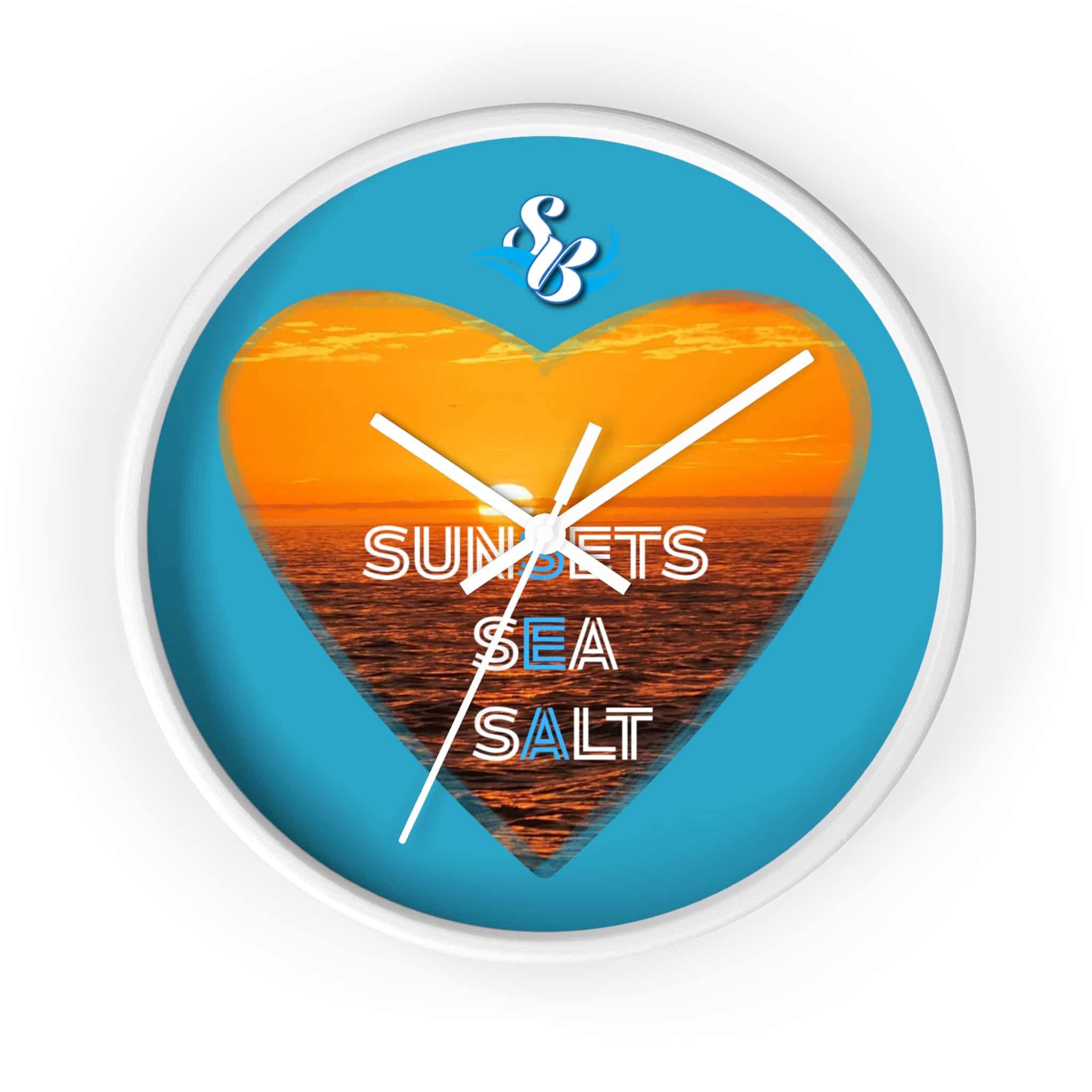 Wake up to the hush of an ocean evening. This 10″ wall clock carries a warm sunset captured inside a heart — molten orange waves framed by a bright turquoise field. The silent mechanism keeps your space calm while the plexiglass face and sharp digital print preserve the glow and texture of the sea. Hang it in a kitchen, hallway, or beach cottage to bring a steady, sun-dipped rhythm to moments that matter — quiet breakfasts, slow afternoons, and evenings spent reminiscing about shorelines.