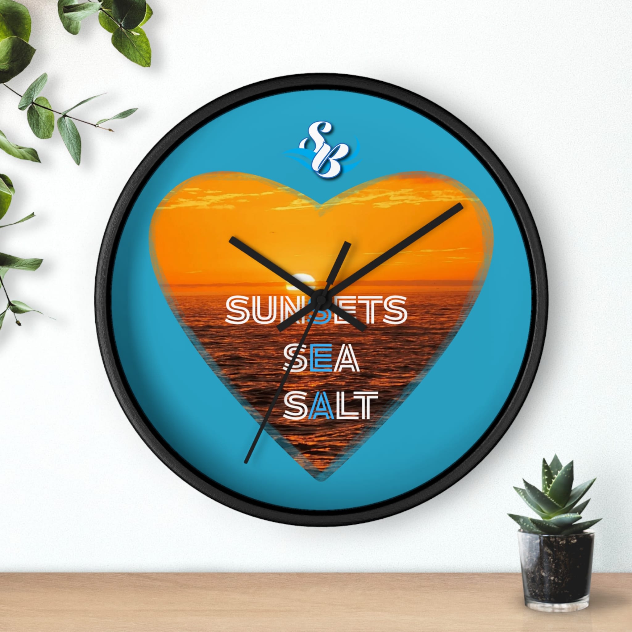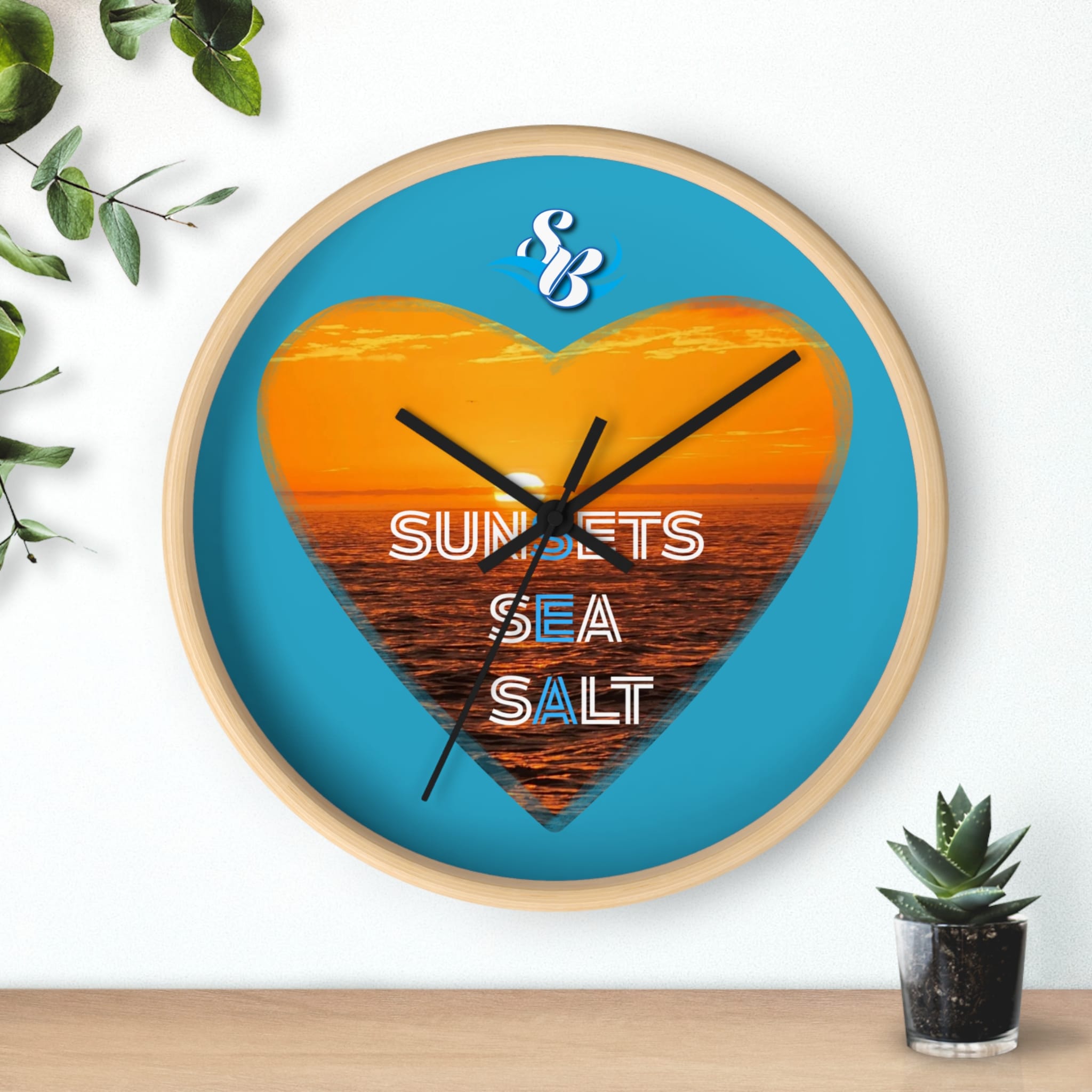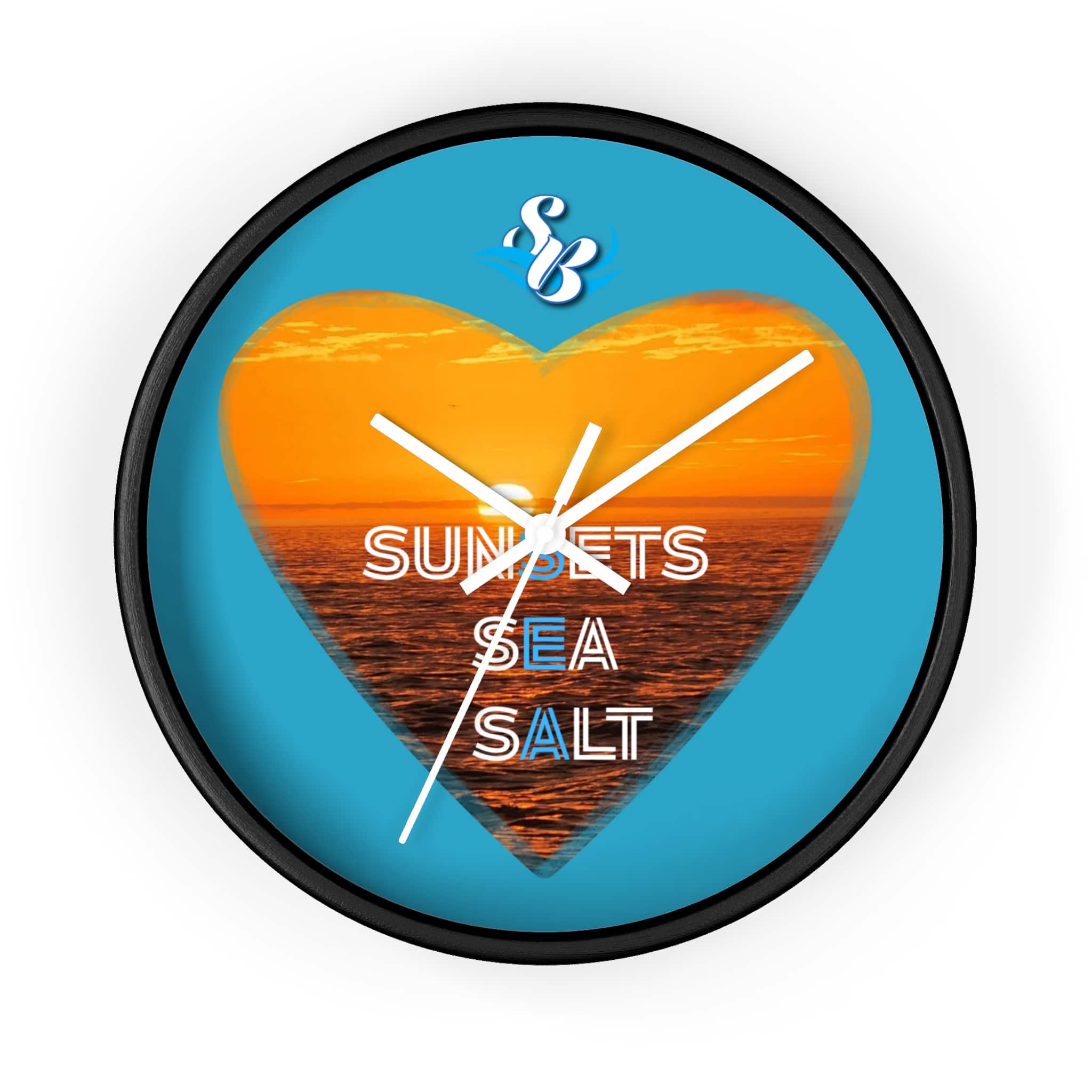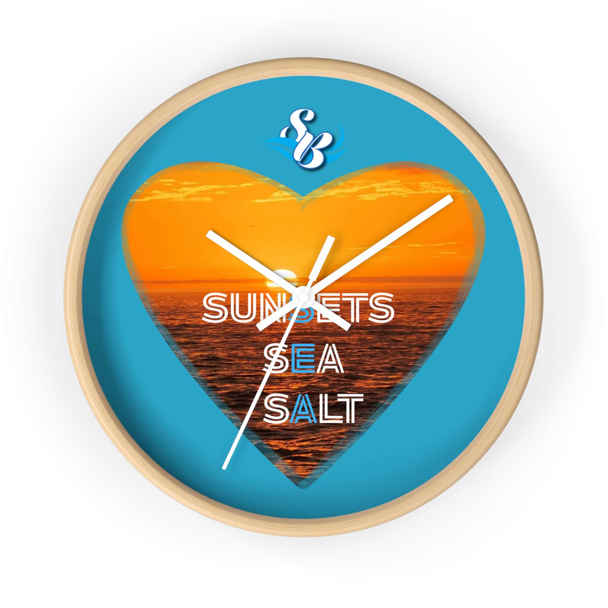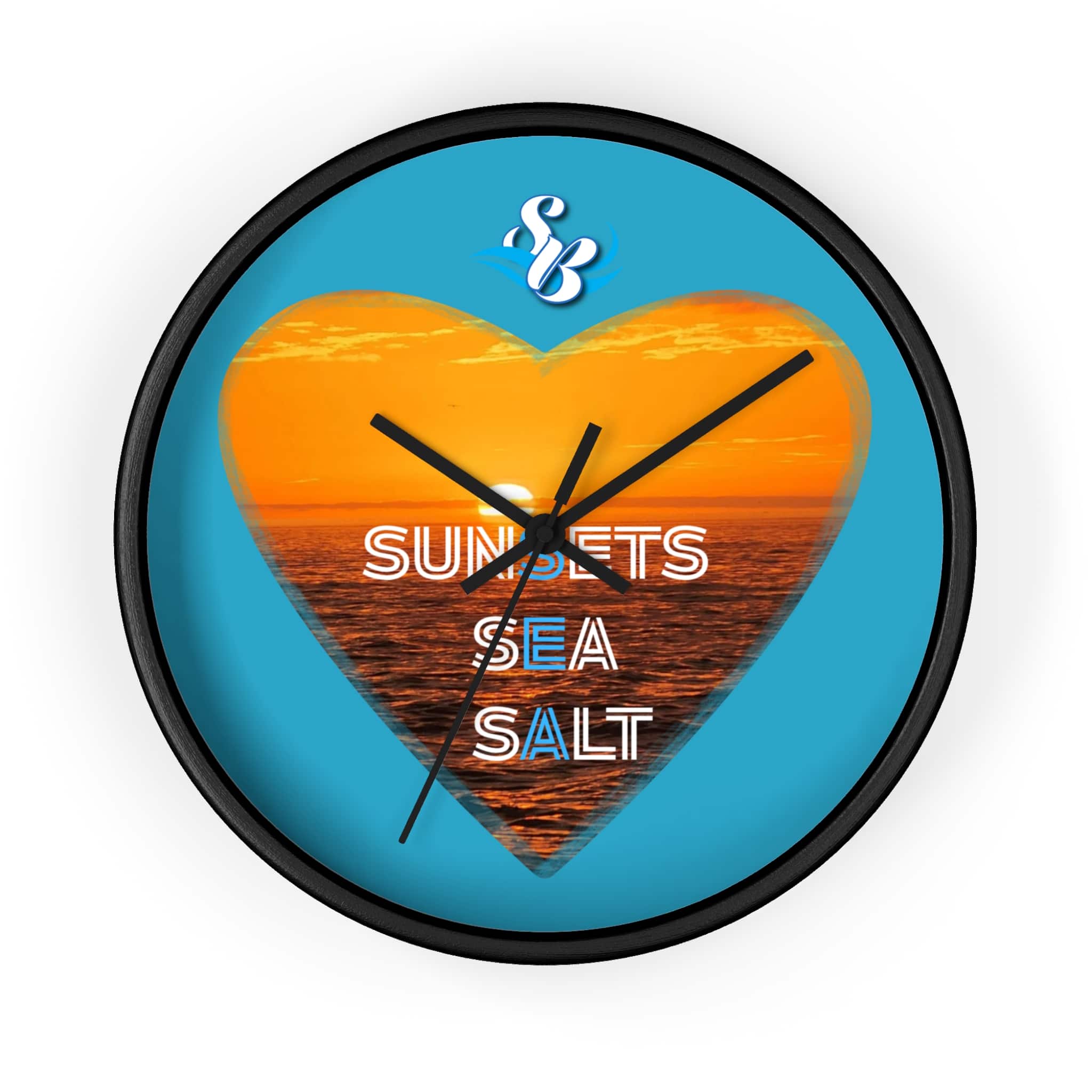 Wake up to the hush of an ocean evening. This 10″ wall clock carries a warm sunset captured inside a heart — molten orange waves framed by a bright turquoise field. The silent mechanism keeps your space calm while the plexiglass face and sharp digital print preserve the glow and texture of the sea. Hang it in a kitchen, hallway, or beach cottage to bring a steady, sun-dipped rhythm to moments that matter — quiet breakfasts, slow afternoons, and evenings spent reminiscing about shorelines.