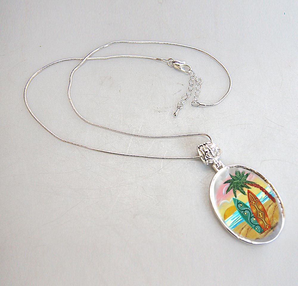 Surf Blocks Silver Plated Mother of Pearl Jewelry Pendant Necklace Coastal – 44044