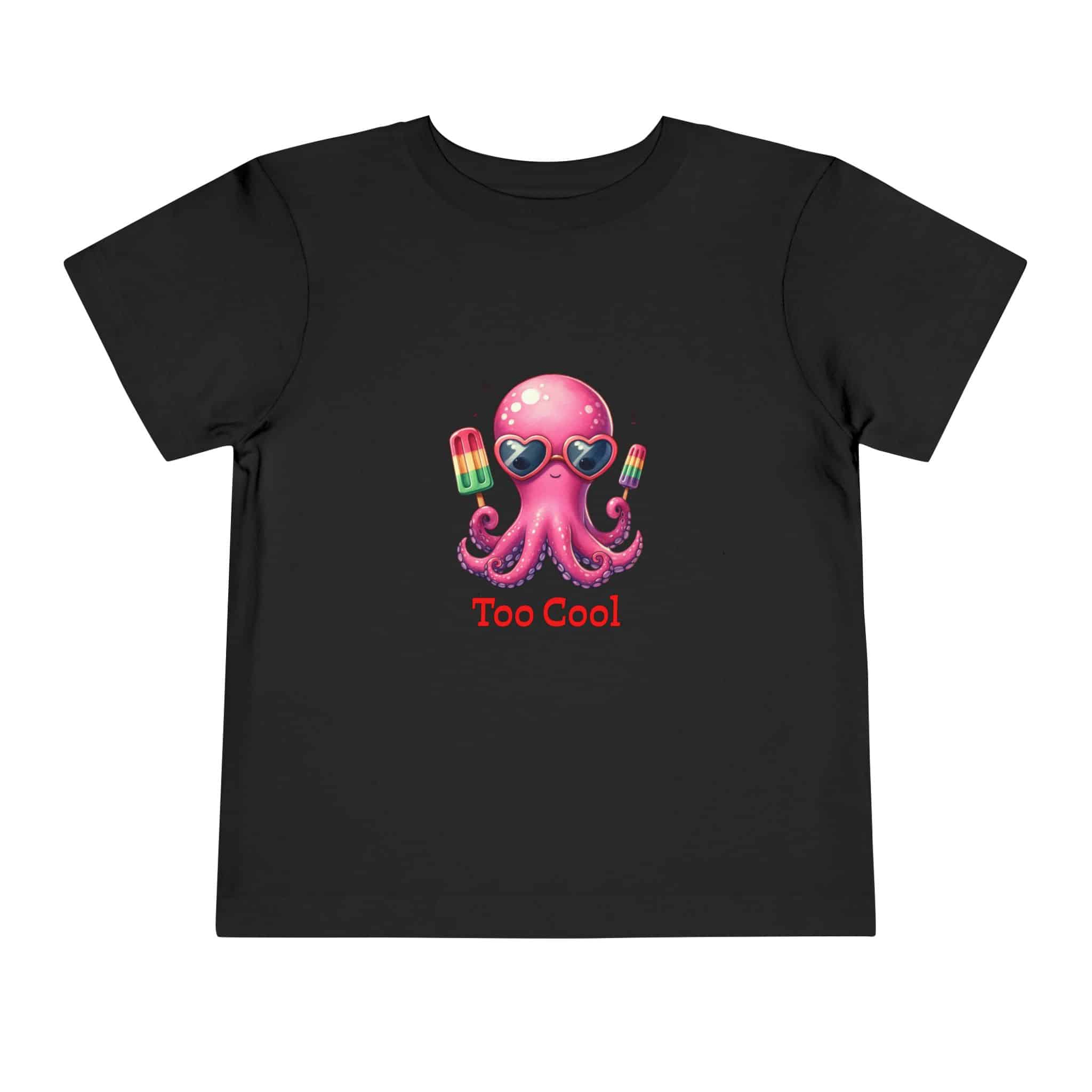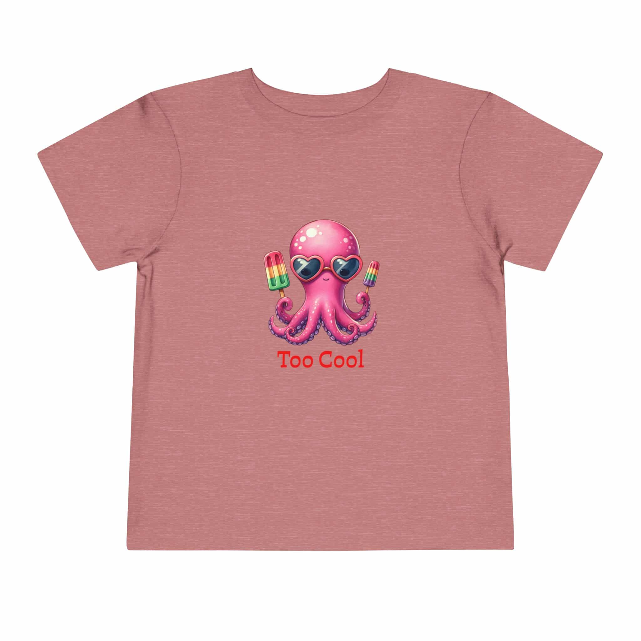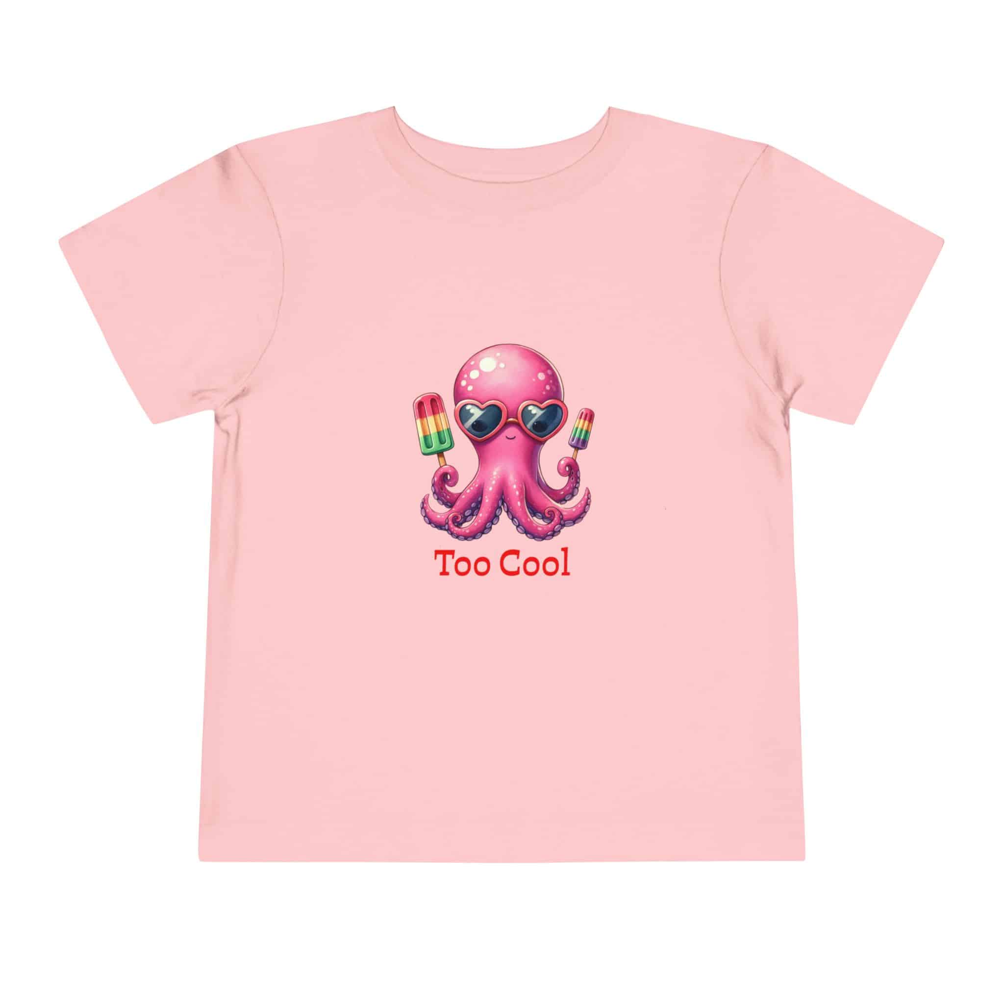 Toddler T‑Shirt — “Too Cool” Pink Octopus with Popsicles