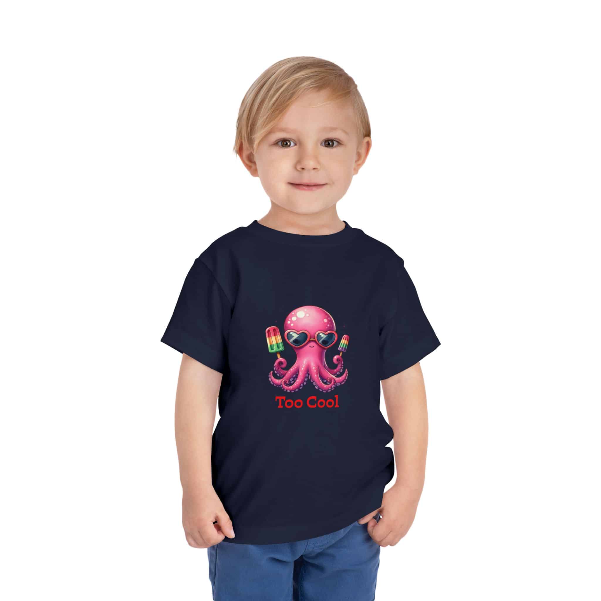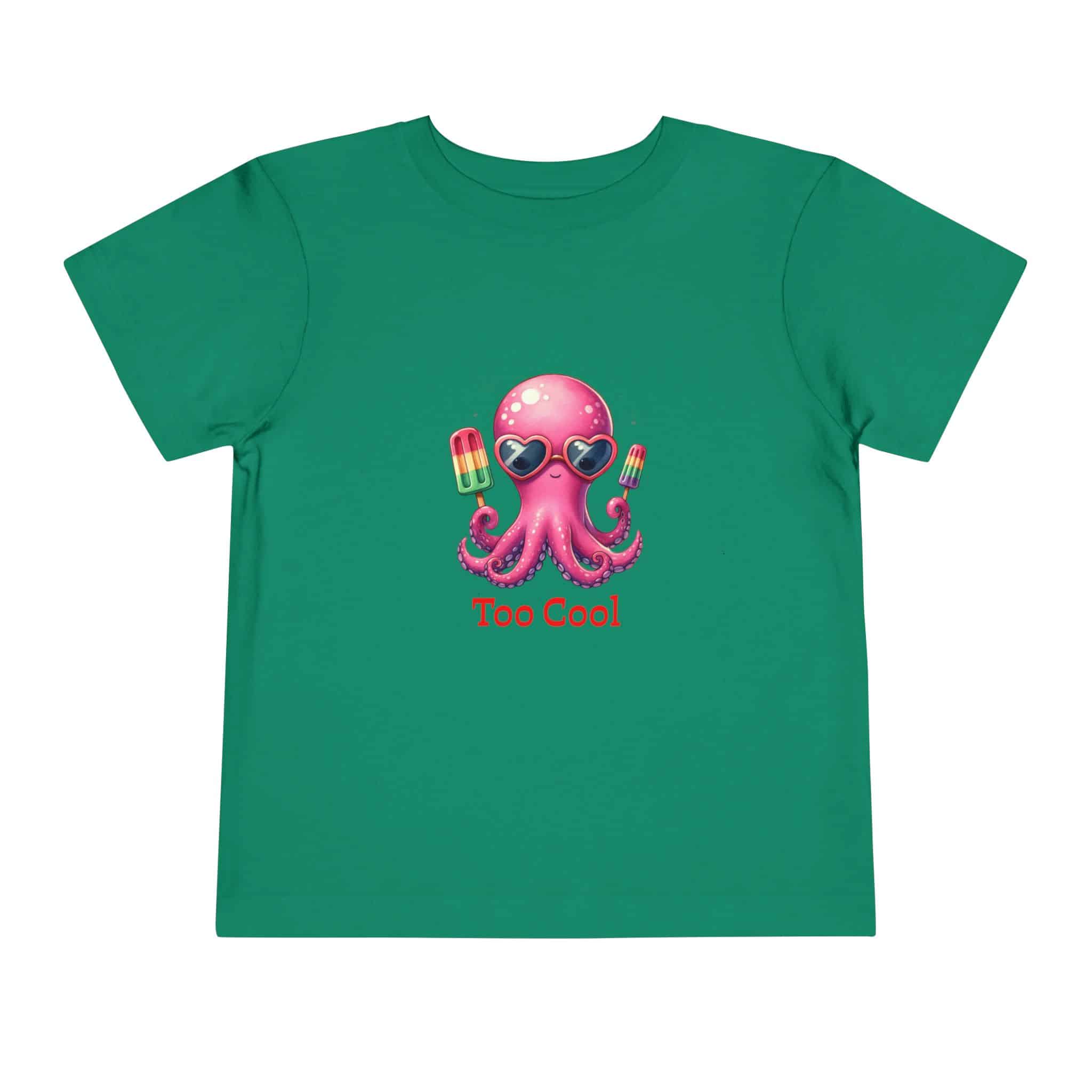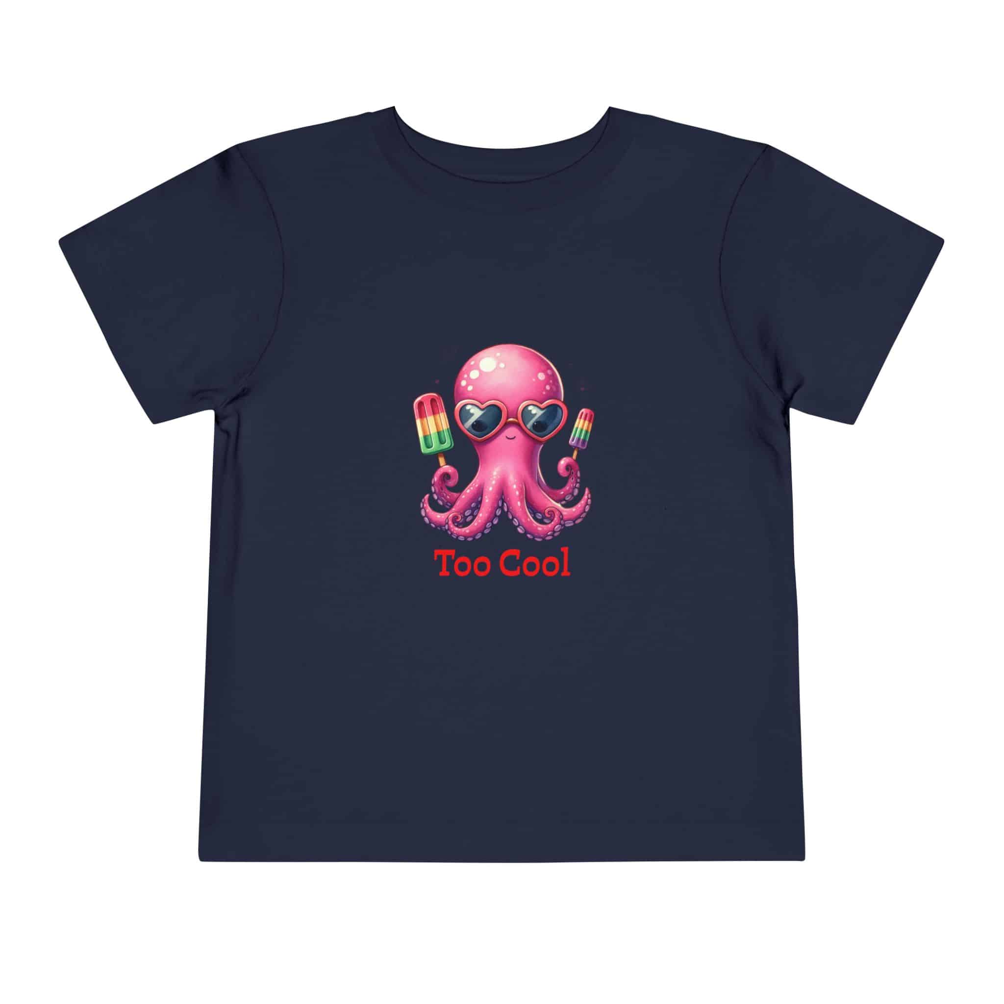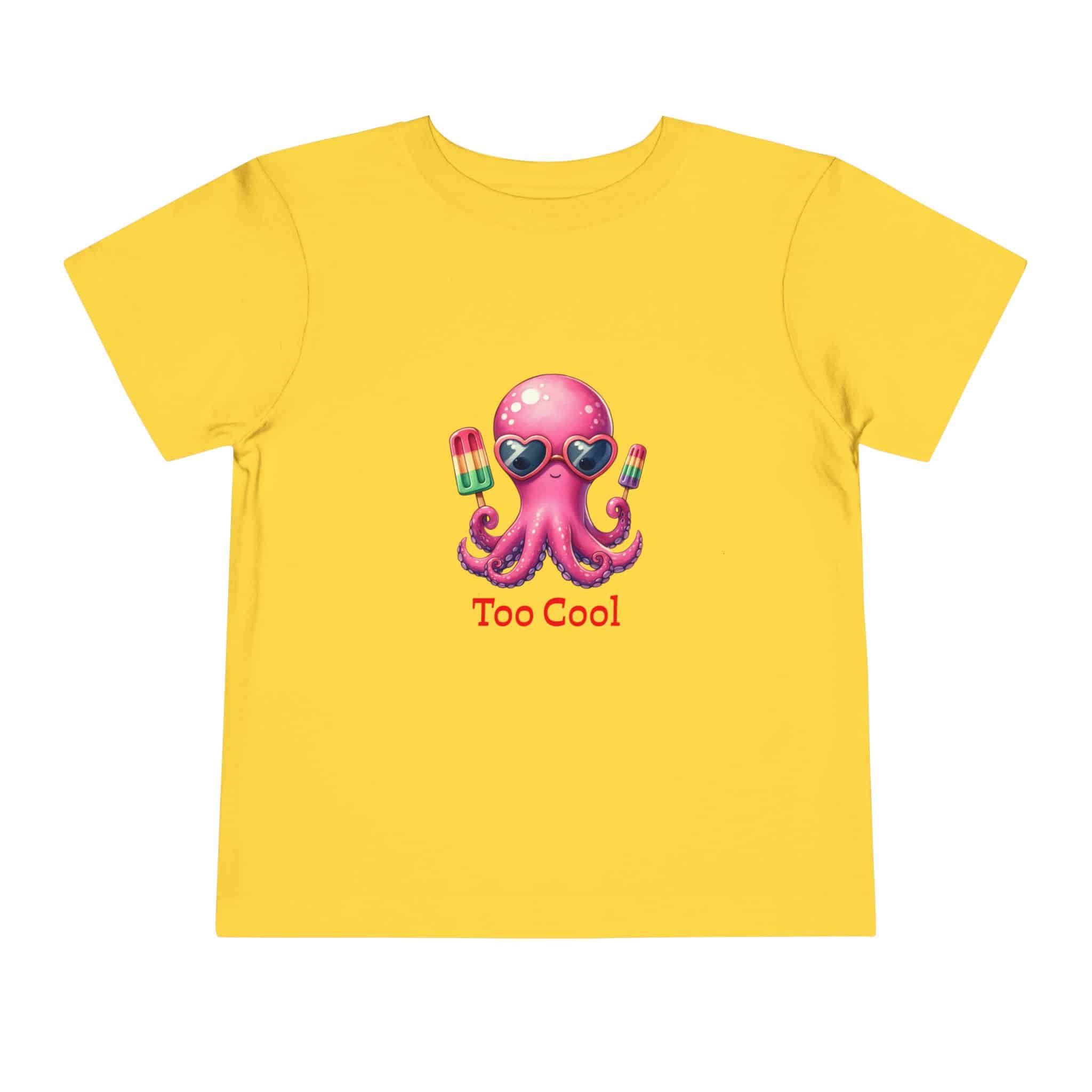 Toddler T‑Shirt — “Too Cool” Pink Octopus with Popsicles