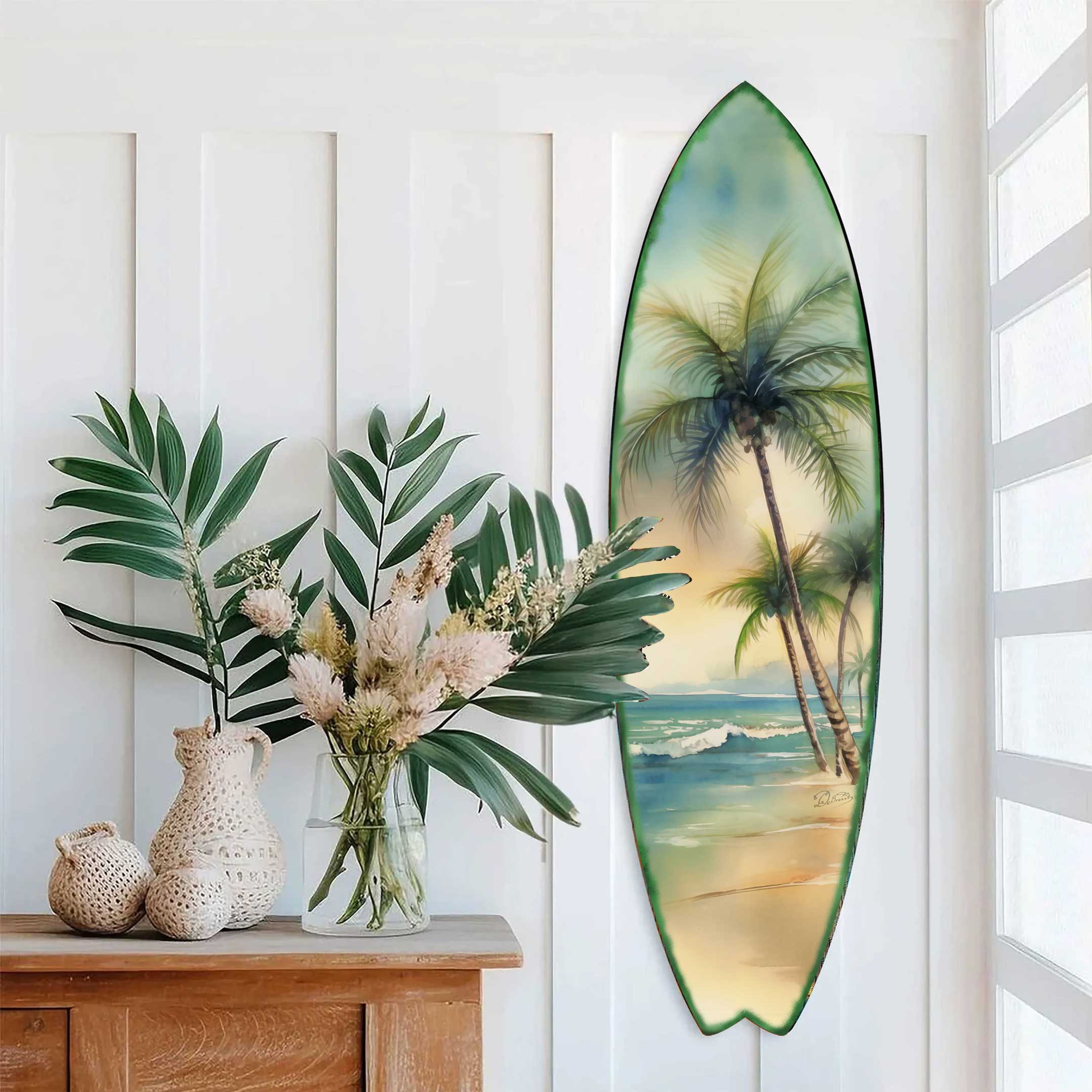 🌴 Bring the warmth of the tropics into your home with this handcrafted Tropical Palm Beach Surfboard Wall Art by G. DeBrekht. Featuring graceful palm trees swaying over golden sand and turquoise waters, this serene coastal scene captures the relaxed beauty of island living and endless summer days.